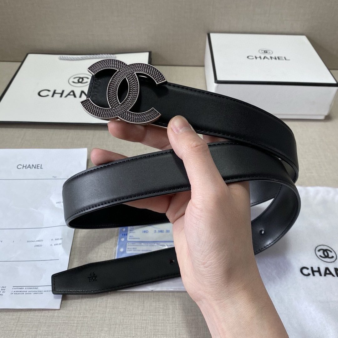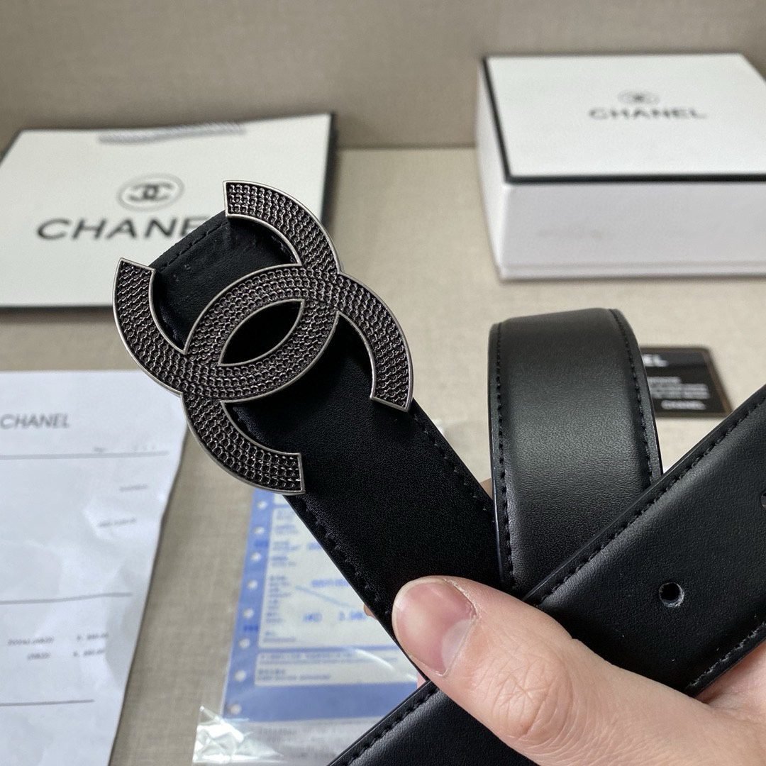 Home Belt CHANEL Belt Chanel Classic Double C-Ring Buckle Black Belt Simple Fashion Noble Luxury