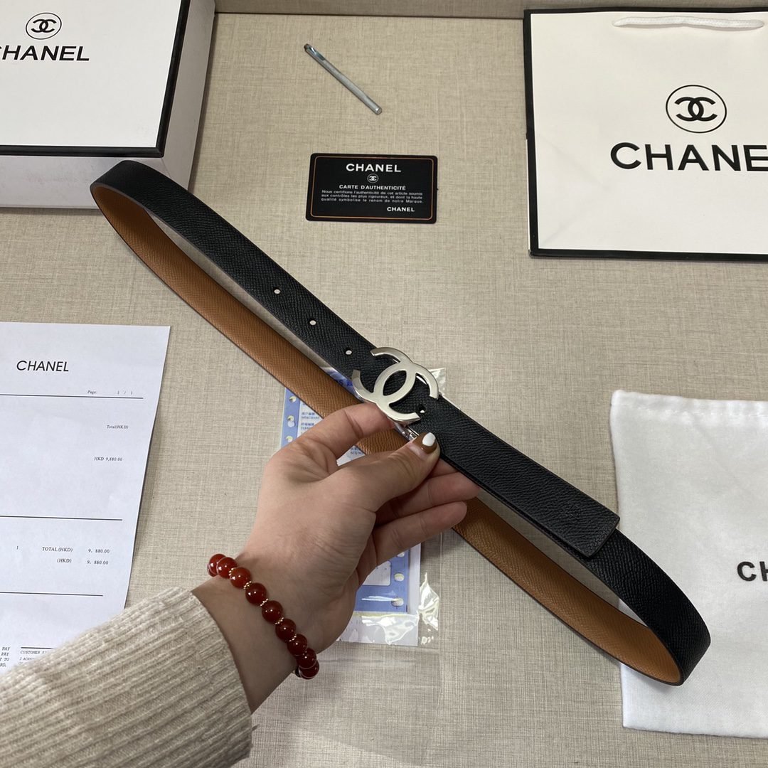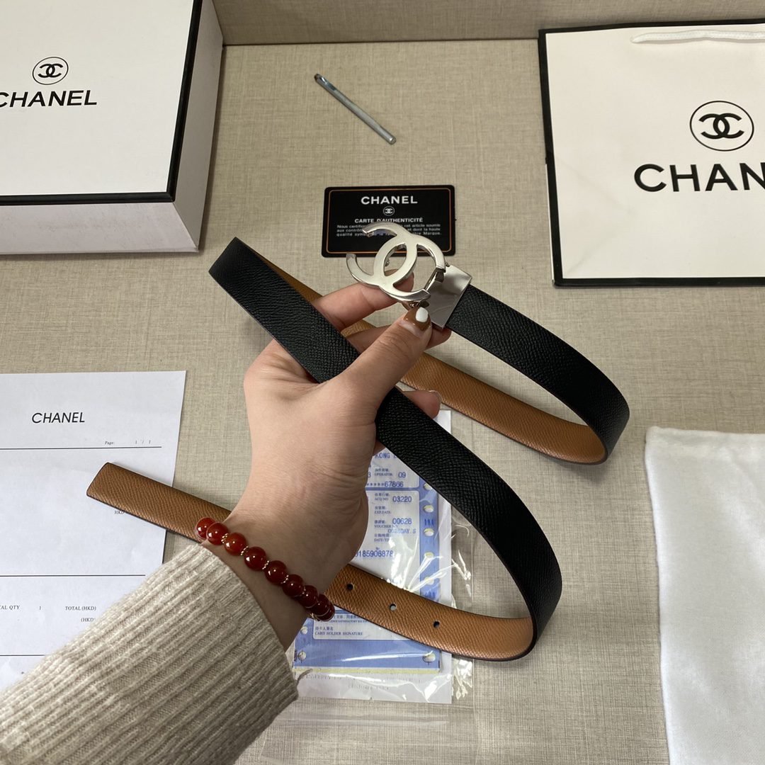Home Belt CHANEL Belt Chanel Classic Double C-Ring Buckle with Double Sided Usable Belt, Simple and Elegant, Classic and Fashionable