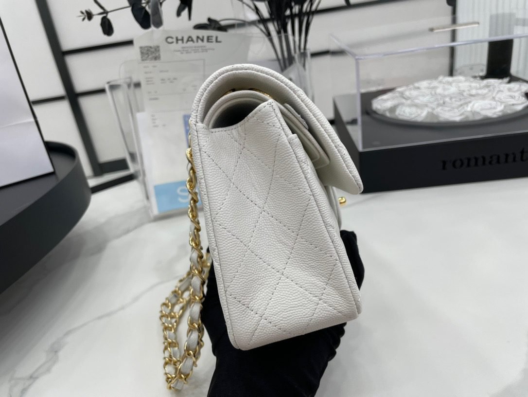 Chanel classic flap caviar leather crossbody bag with gold hardware white