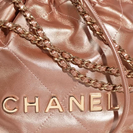 CHANEL / CHANEL 22 MINI HANDBAG Metallic Calfskin & Pink Gold-Tone Metal Copper Metallic Calfskin & Pink Gold-Tone Metal Copper