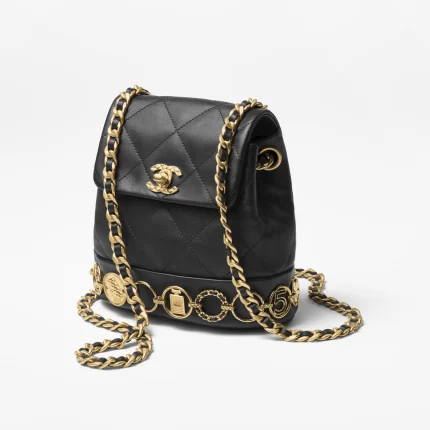 “CHANEL / MINI FLAP BAG Lambskin, Patent Calfskin & Gold-Tone Metal Black” has been added to your cart. View cart