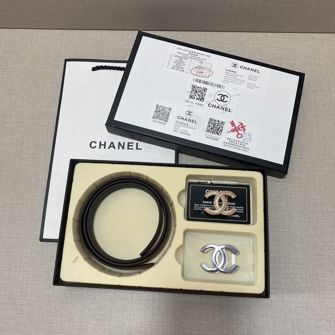 Home Belt CHANEL Belt Chanel Classic Two Buckle Belt Gift Box Set – High end Fashion, Noble and Elegant