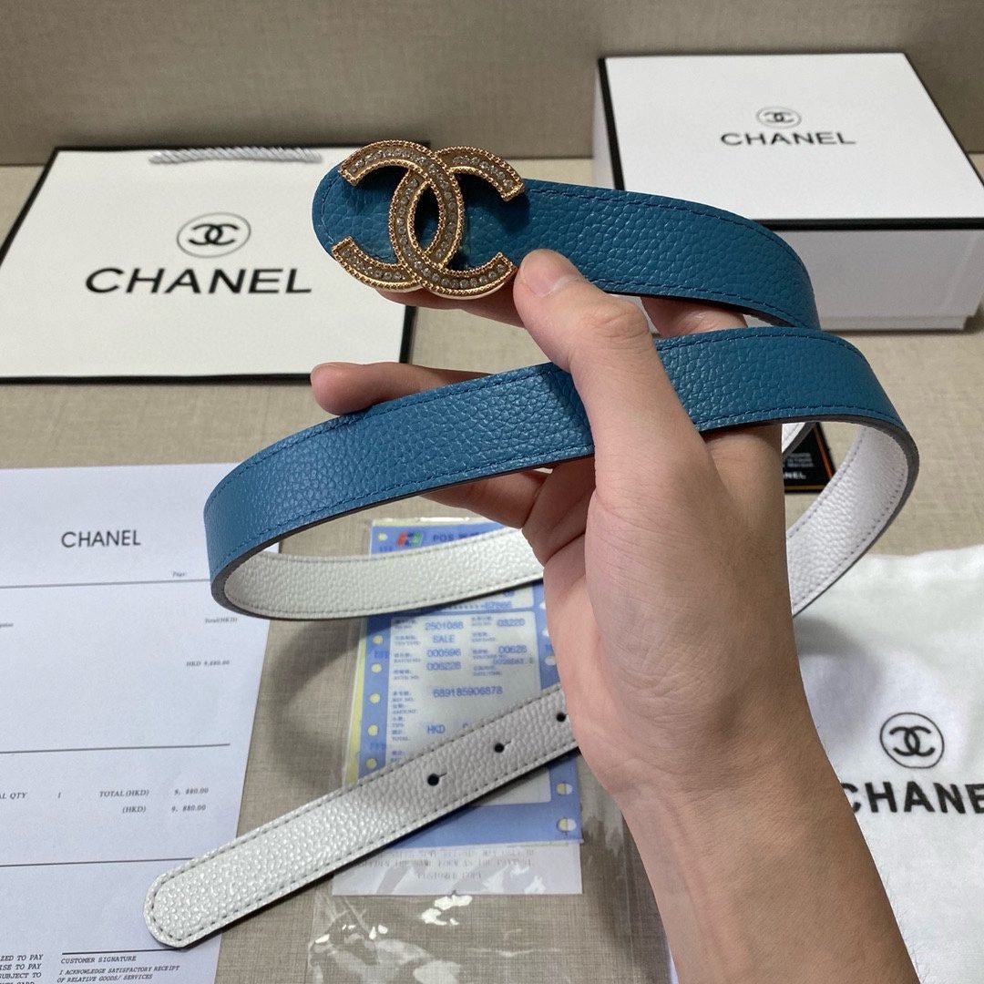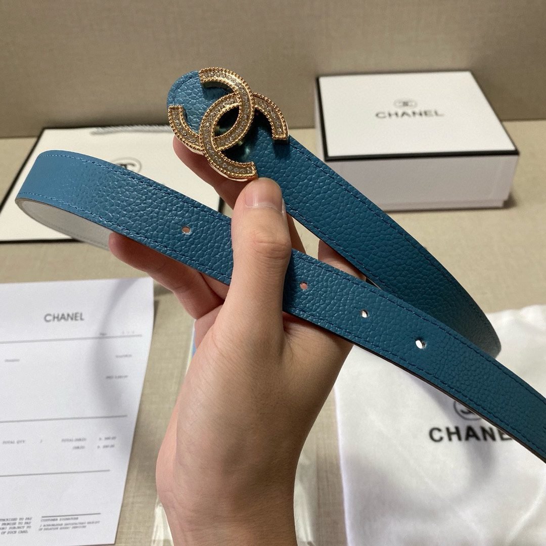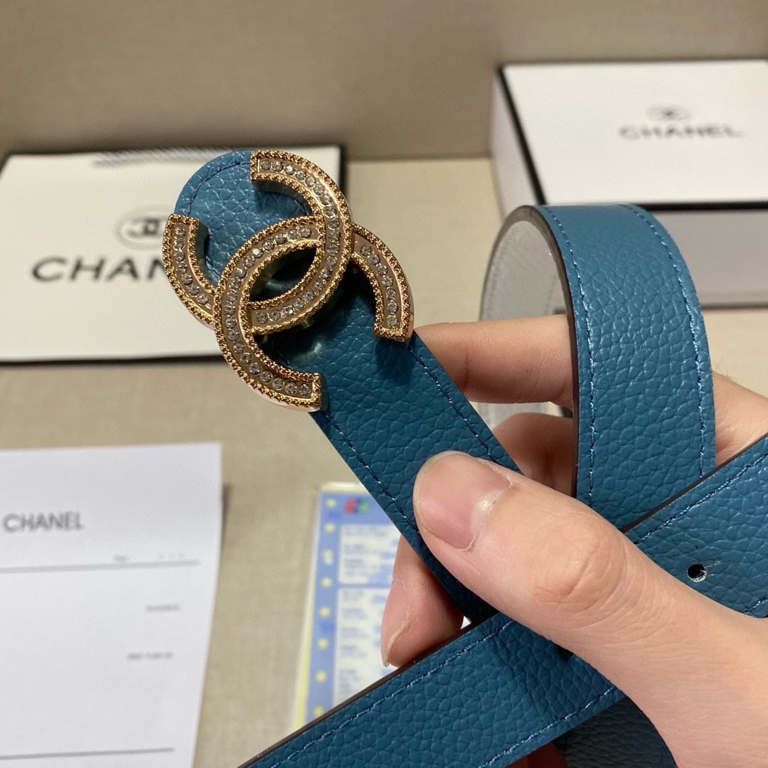 Home Belt CHANEL Belt Chanel Gold Double C Diamond Ring Buckle Blue Belt Simple, Fashionable, Noble, Elegant
