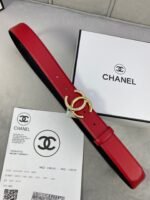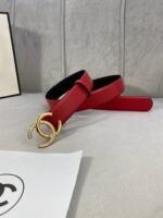 Home Belt CHANEL Belt Chanel Gold Double C Diamond Ring Buckle Red Belt Simple and Elegant, Low key Luxury