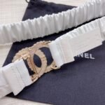 Home Belt CHANEL Belt Chanel Gold Double C Diamond Ring Buckle White Elastic Belt Simple and Elegant Classic Fashion