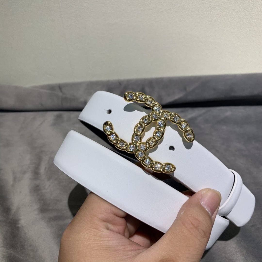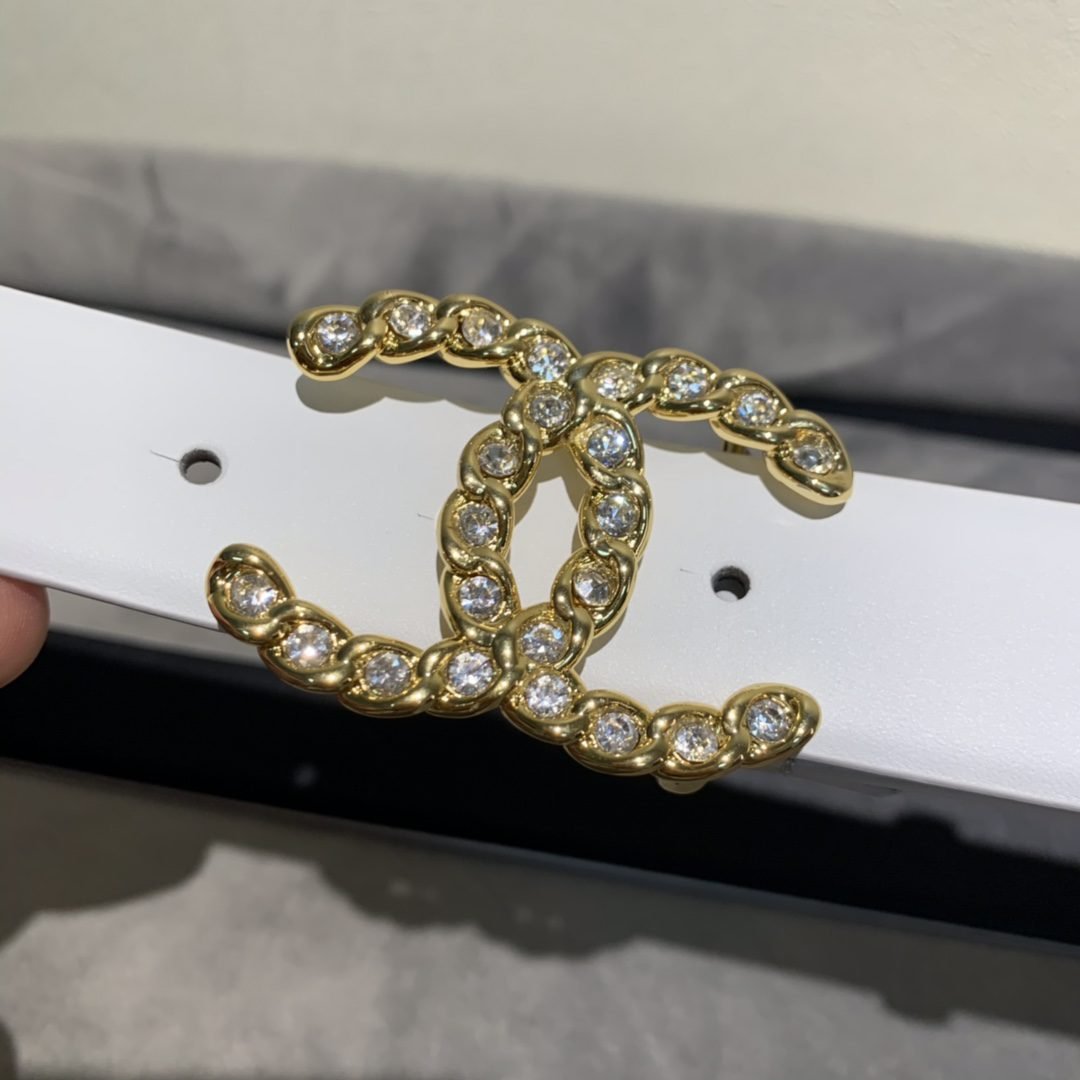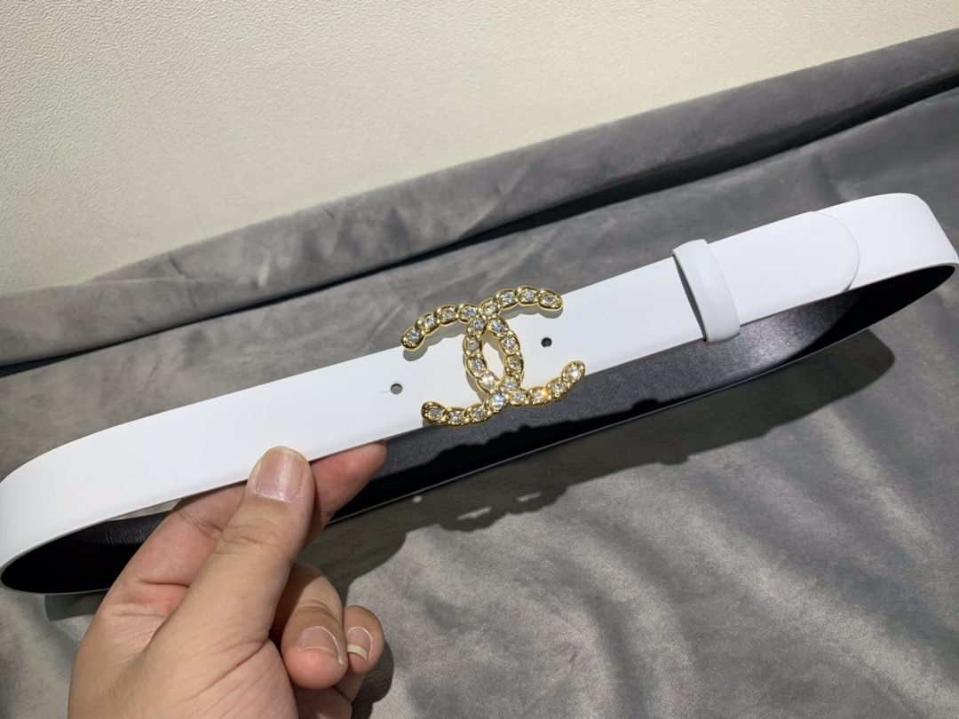 Home Belt CHANEL Belt Chanel gold double C diamond studded buckle with white belt, simple and elegant, low-key and luxurious