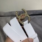 Home Belt CHANEL Belt Chanel gold double C diamond studded buckle with white belt, simple and elegant, low-key and luxurious