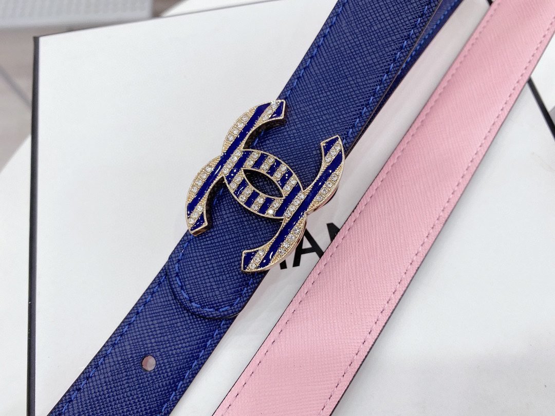 Chanel Gold Double C Diamond Ring Buckle with Double Sided Usable Belt, Simple, Elegant, Noble, Luxury
