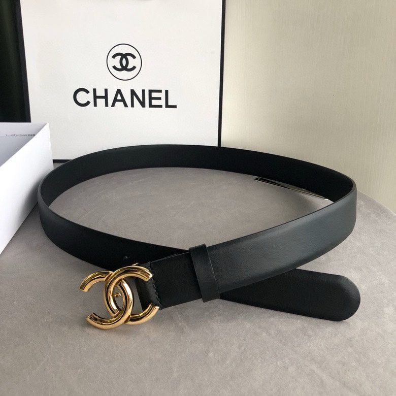 Home Belt CHANEL Belt Chanel Gold Double C-Ring Buckle Black Belt Simple, Fashionable, Noble, Elegant
