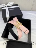 Home Belt CHANEL Belt Chanel Gold Double C-Ring Buckle Pink Belt Simple and Elegant, Low key Luxury