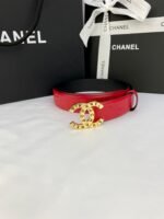Home Belt CHANEL Belt Chanel gold double C-ring buckle red belt, simple and elegant, low-key and luxurious