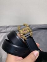 Chanel gold double C-ring buckle black belt, simple and elegant, low-key and luxurious $210.00 Original price was: $210.00.$66.69Current price is: $66.69.