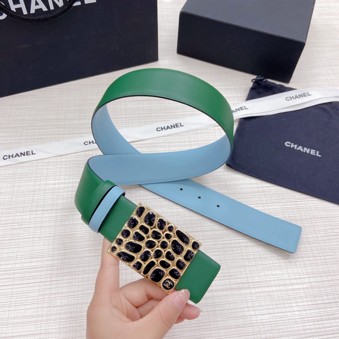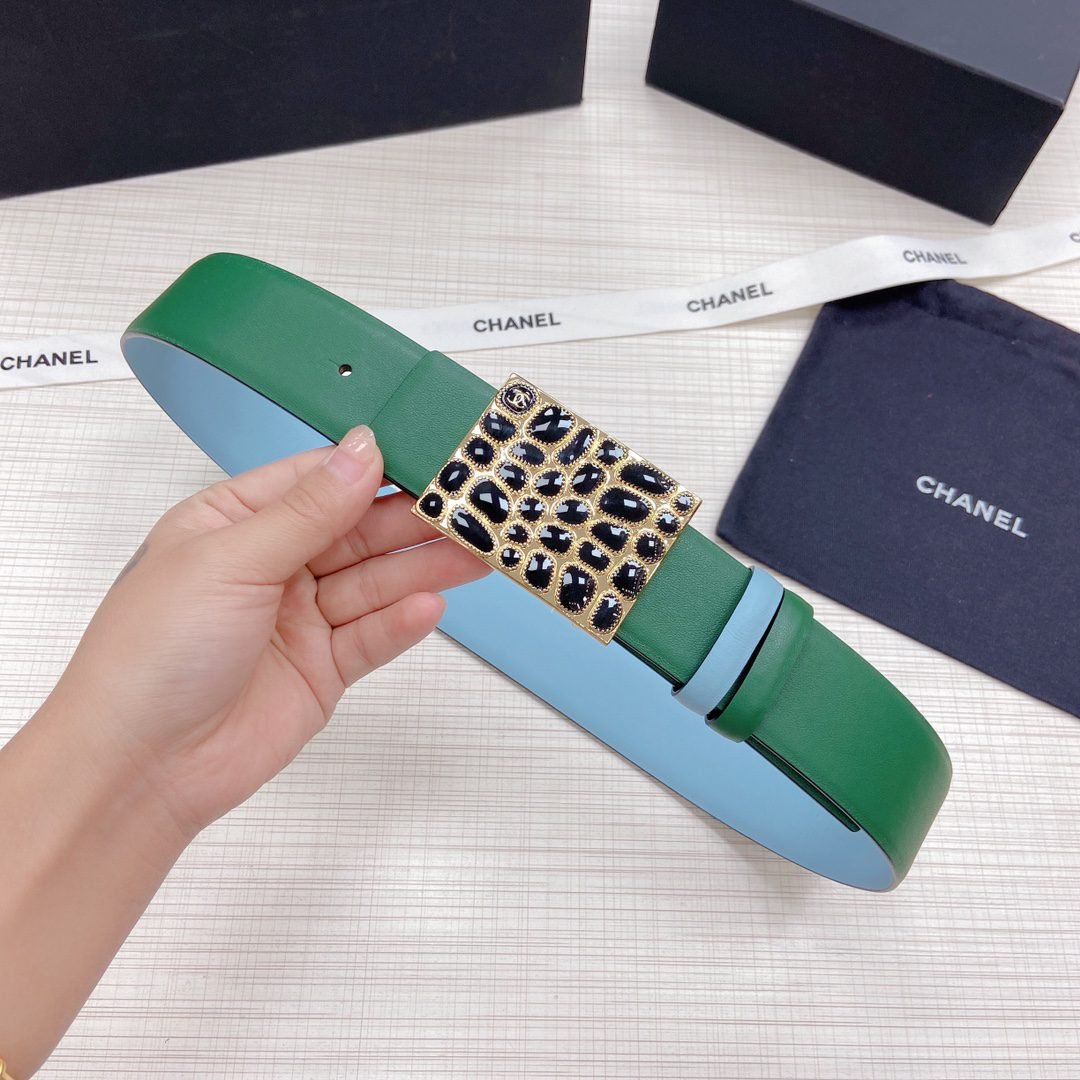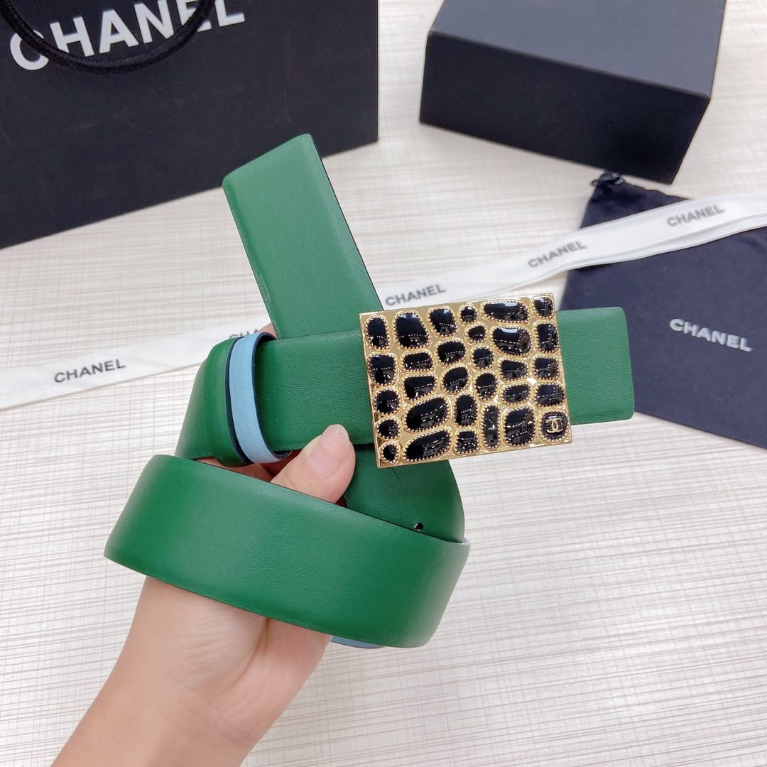 Chanel gold square inlaid emerald buckle with double-sided usable belt, simple and elegant, classic and fashionable