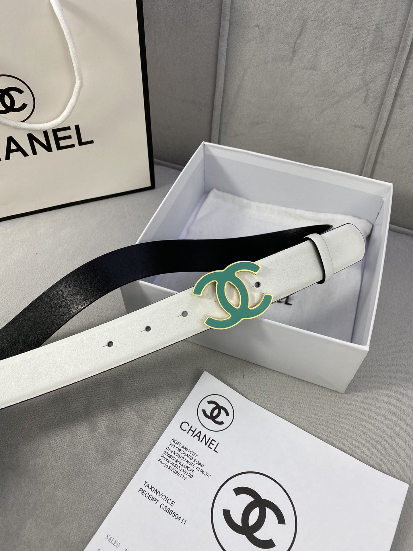Chanel green double C-ring buckle red belt, simple, atmospheric, exquisite and elegant