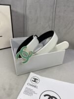 Home Belt CHANEL Belt Chanel green double C-ring buckle belt, simple, atmospheric, exquisite and elegant