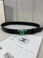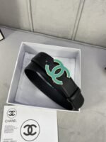 Chanel green double C-ring buckle black belt, simple, atmospheric, exquisite and elegant