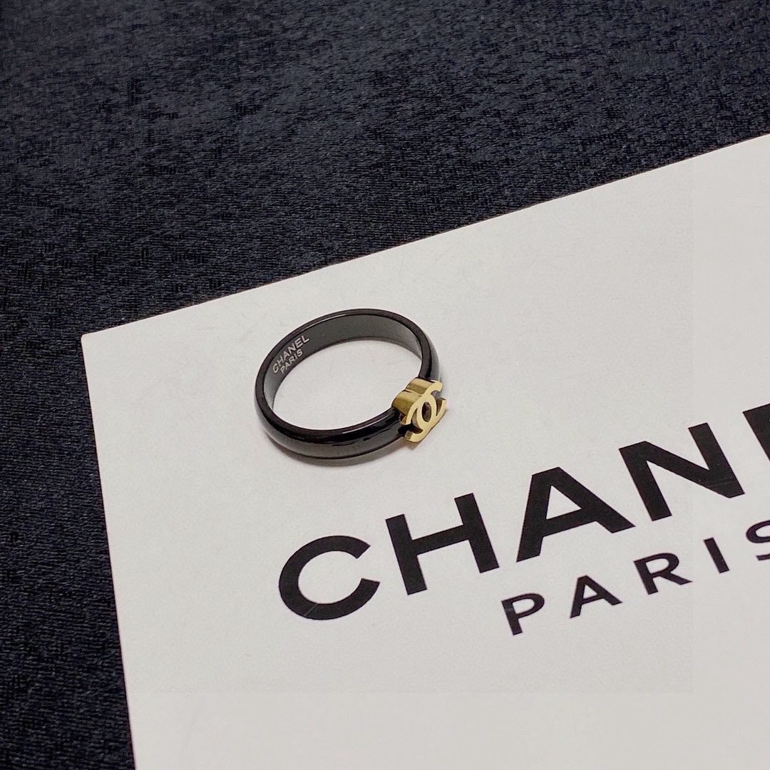 Home JEWELRY Chanel Letter double C stainless steel black color preserving series modeling ring size: 6-7-8