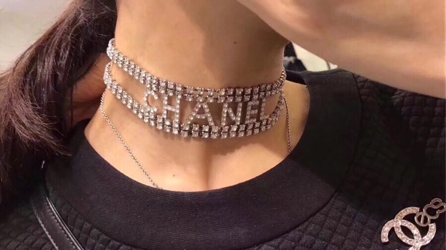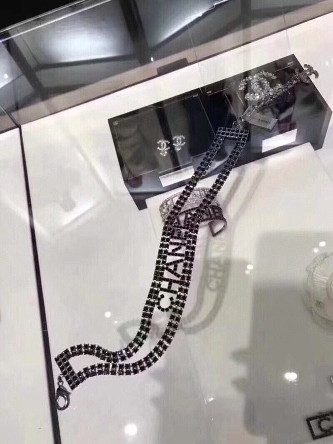 Home JEWELRY Chanel Letter full drill choker necklace color: black , white note color which you want when you fill shipping address