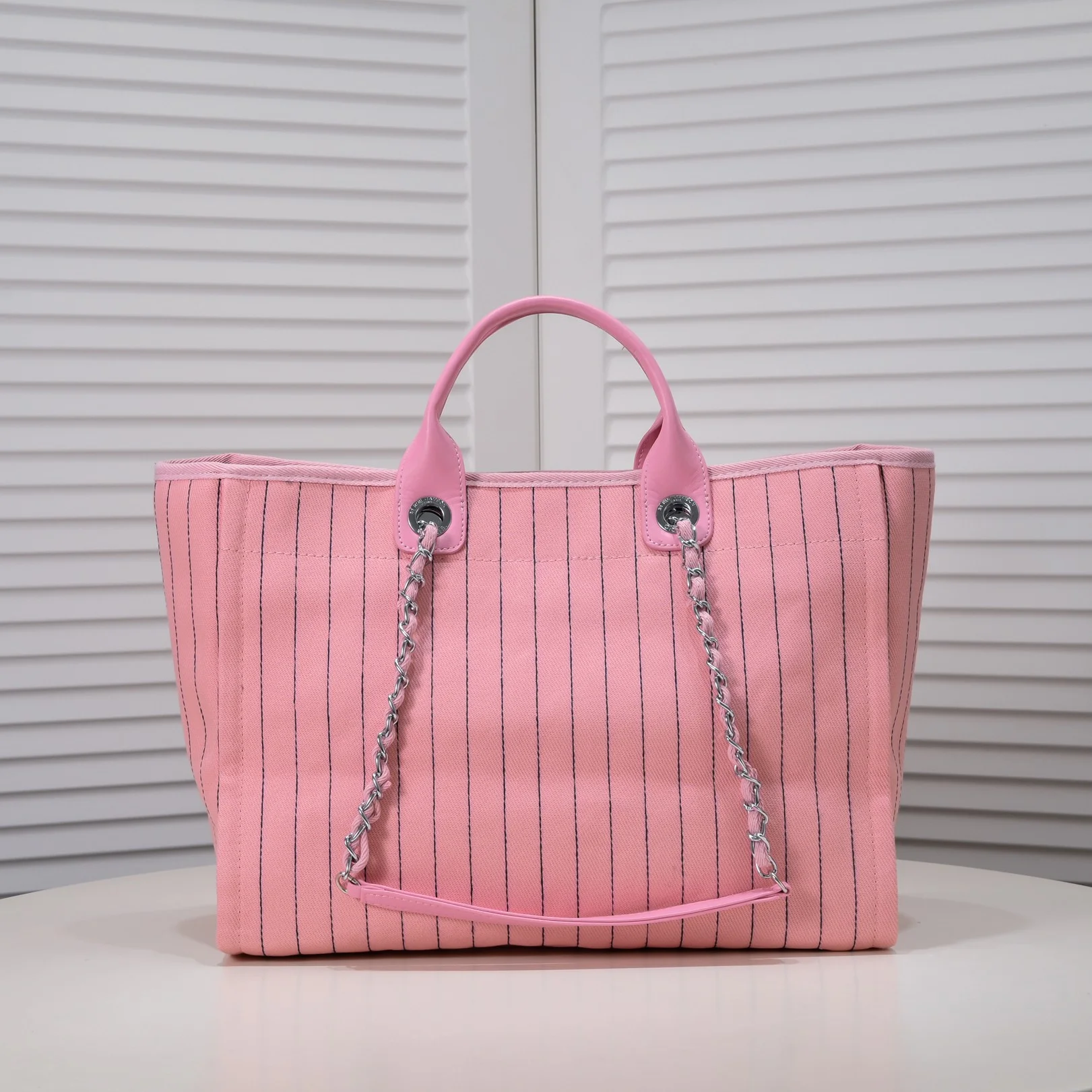Be the first to review “Chanel new beach bag denim bag Pink with little wallet size: 48*38*30*14cm” Cancel reply