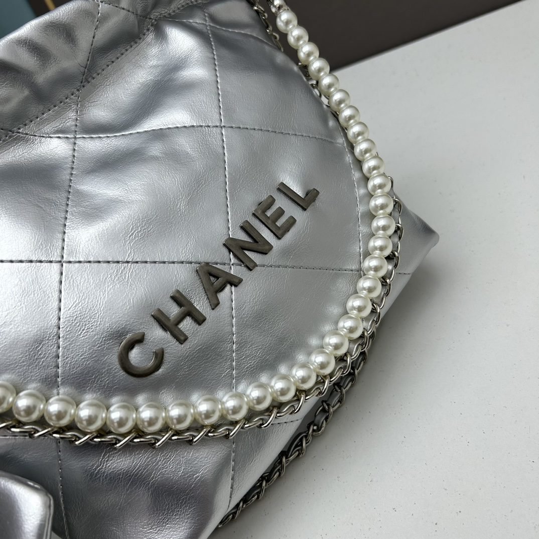 CHANEL Pearl garbage bag sliver size: 23*28*22*7cm
