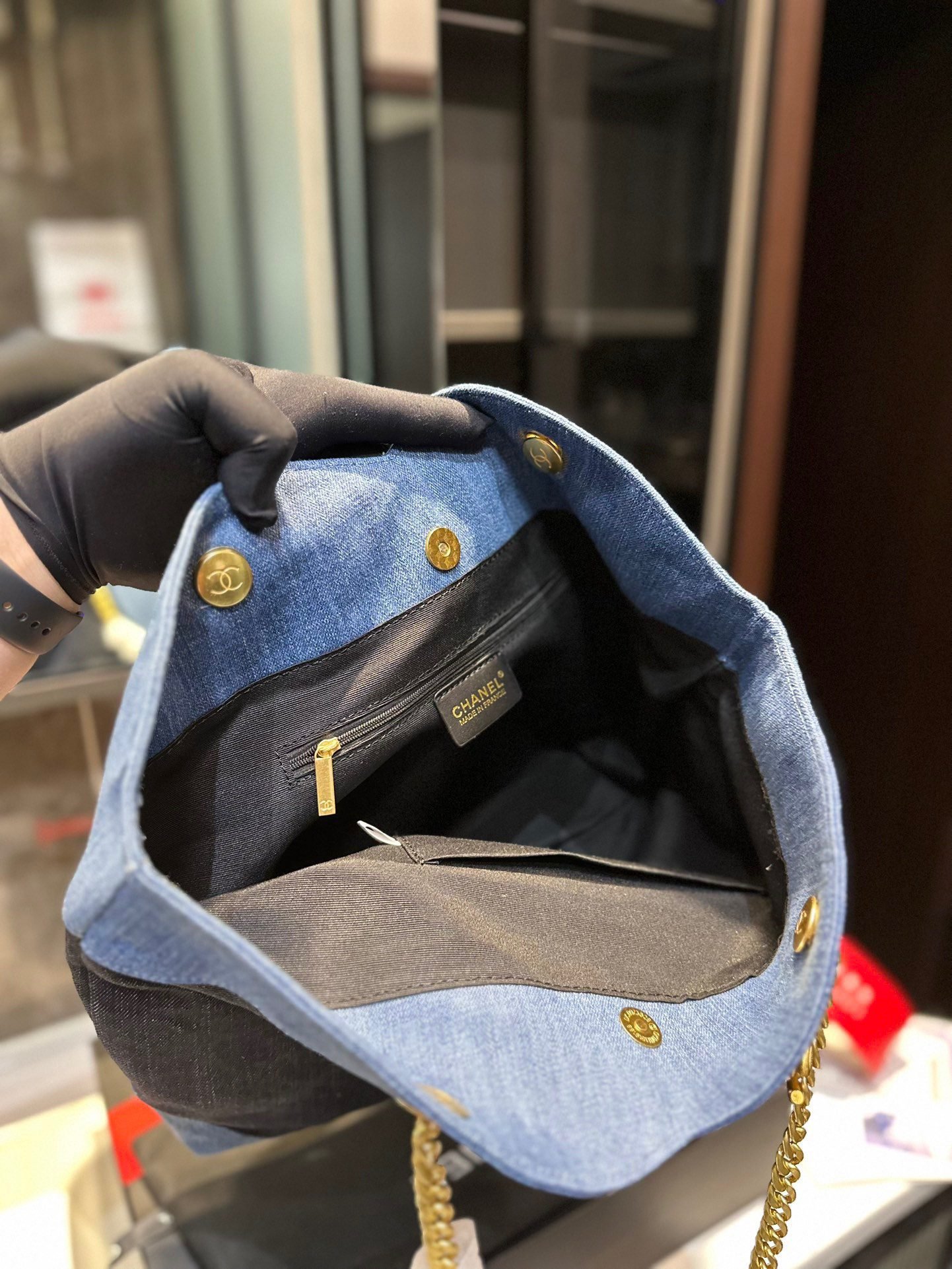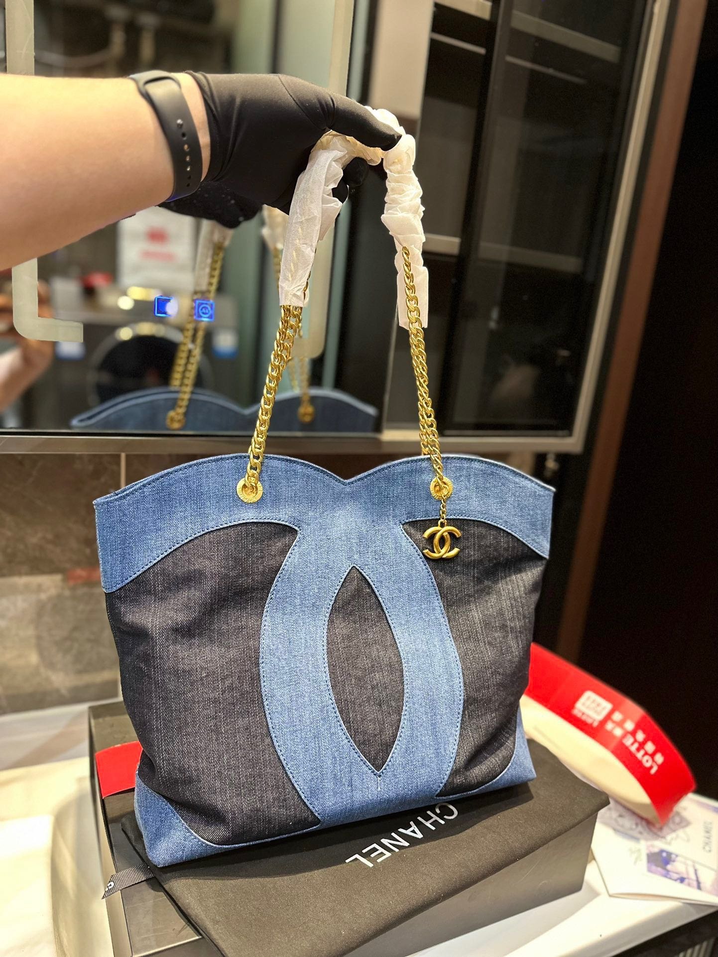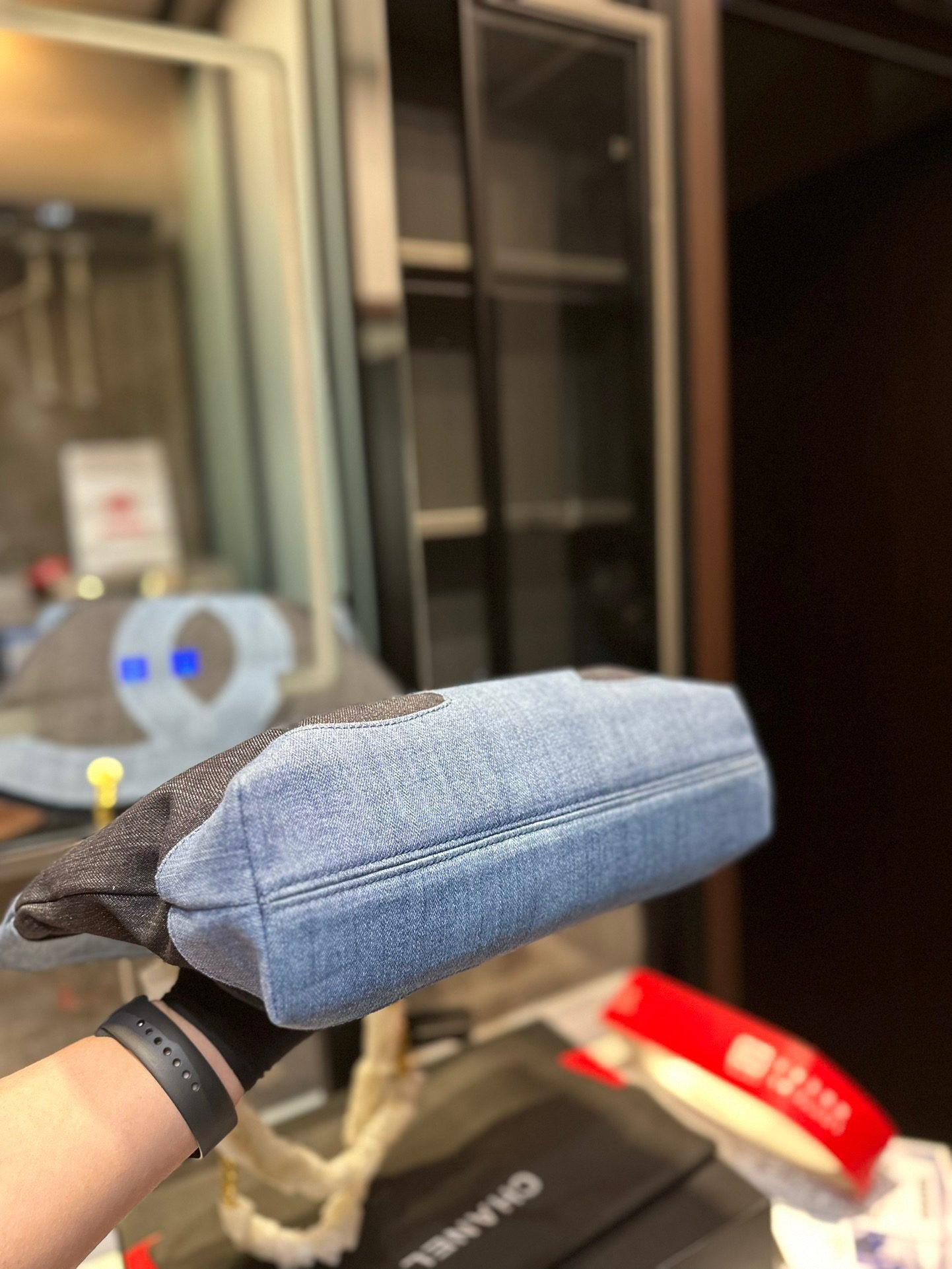 Classic explosive denim shopping bag 】 Chanel Chanel imported ramie cotton denim shopping bag beach bag any details of the version of fabric, the version of embroidery LOGO color back to the many stars love interpretation, the street shot exploded ???????? super hot ???????? shopping holiday trip essential ❕ real white rich Mei special bag ❤️❤️ summer essential ???? Chanel canvas bag, Not general market goods! ???????? summer beach afternoon tea is refreshing!! ???? It’s beautiful! [Naughty]size: 33x 32