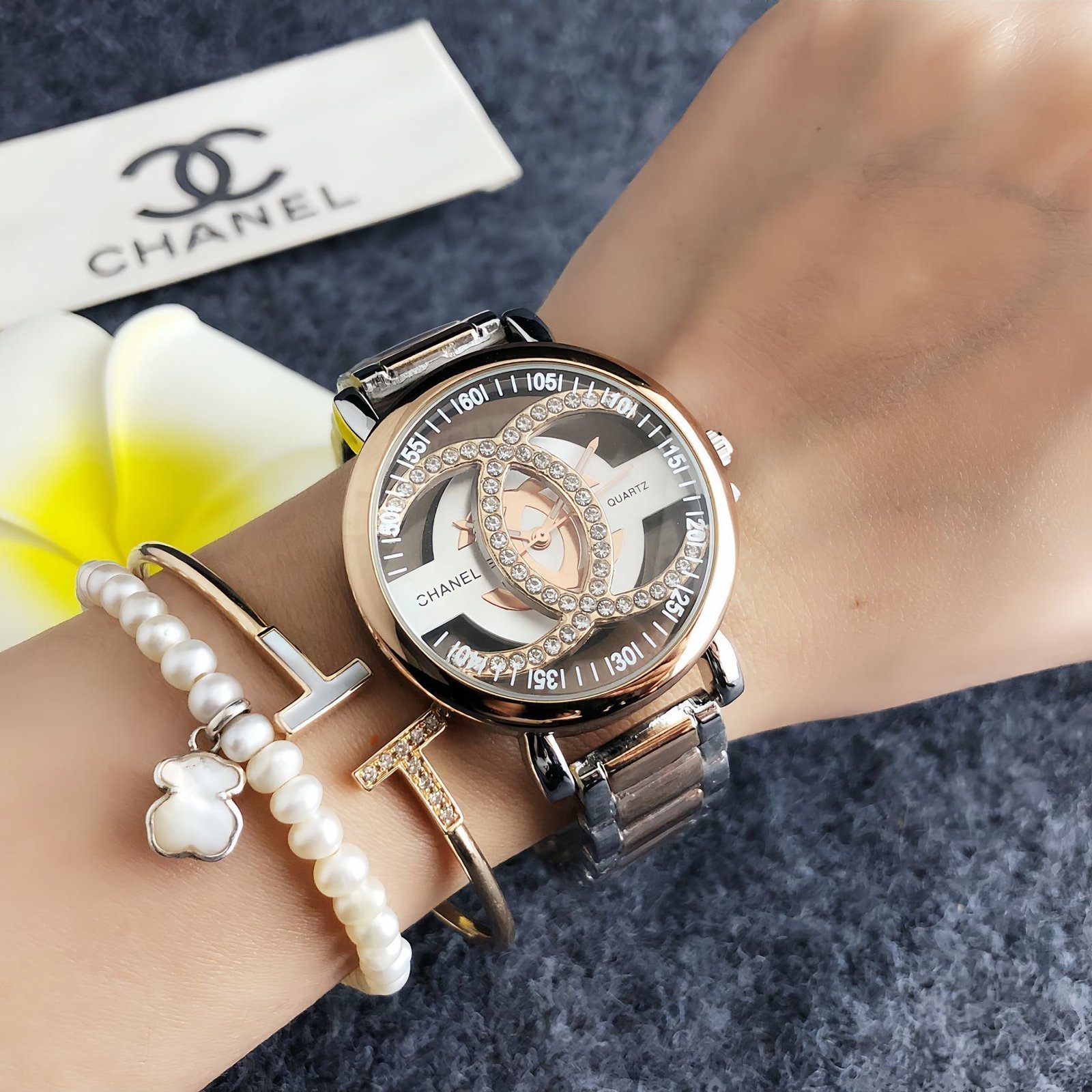 This Chanel watch collection features the iconic rotating double-C logo, dazzling crystal embellishments, and polished metal bracelets in a range of sophisticated color combinations. Crafted with Chanel’s legendary blend of luxury and innovative design, these watches bring a touch of haute couture elegance to any look. Perfect for those who seek a timepiece that embodies iconic style and exceptional craftsmanship, each watch is a testament to Chanel’s legacy of fashion-forward elegance and enduring glamour.