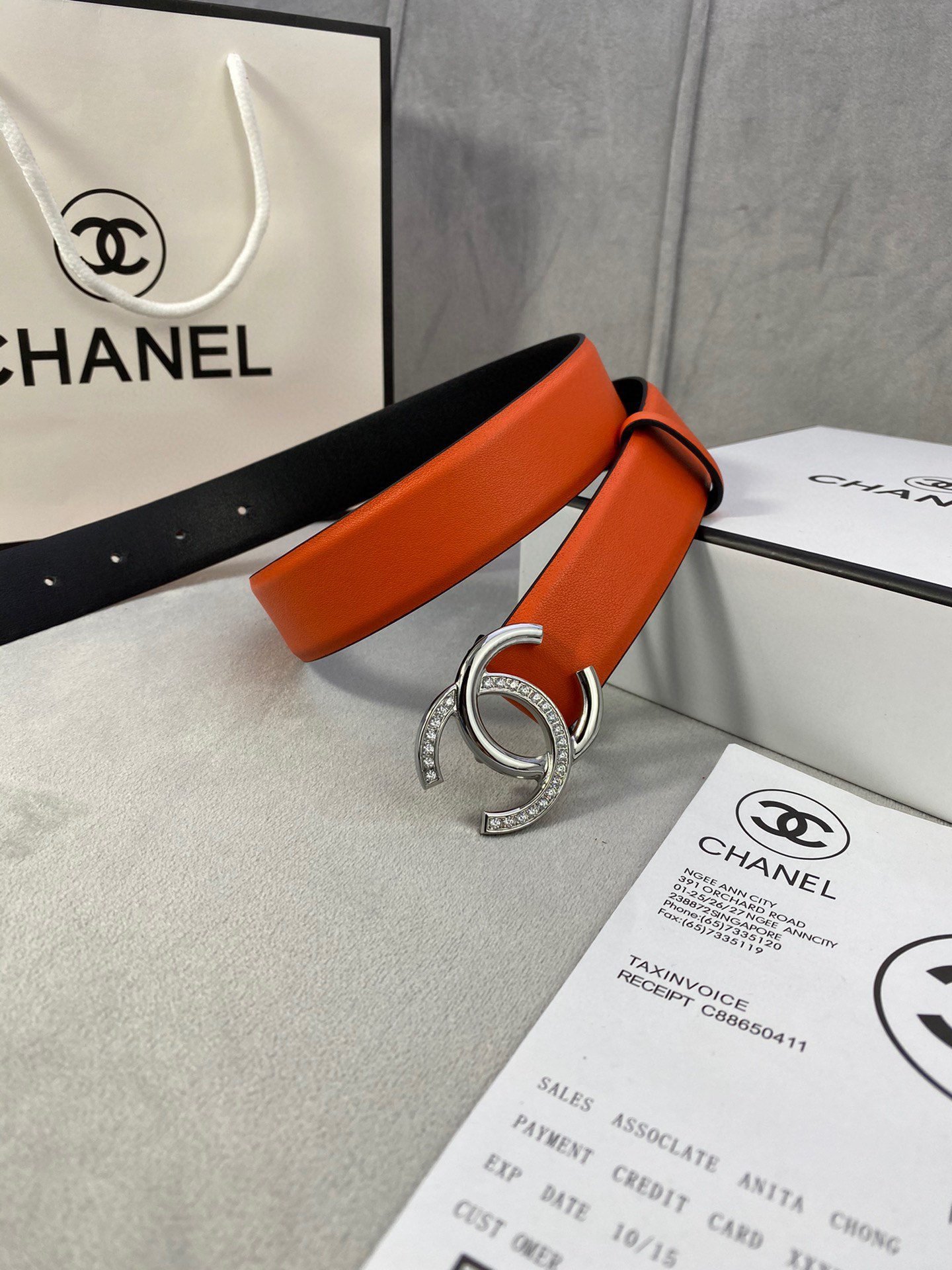 Chanel Silver Double C Diamond Ring Buckle Orange Belt Simple and Elegant, Low key Luxury