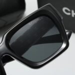 Home SUNGLASSES Sunglasses-Chanel Chanel sunglasses with black borders and dark gray lens patterns