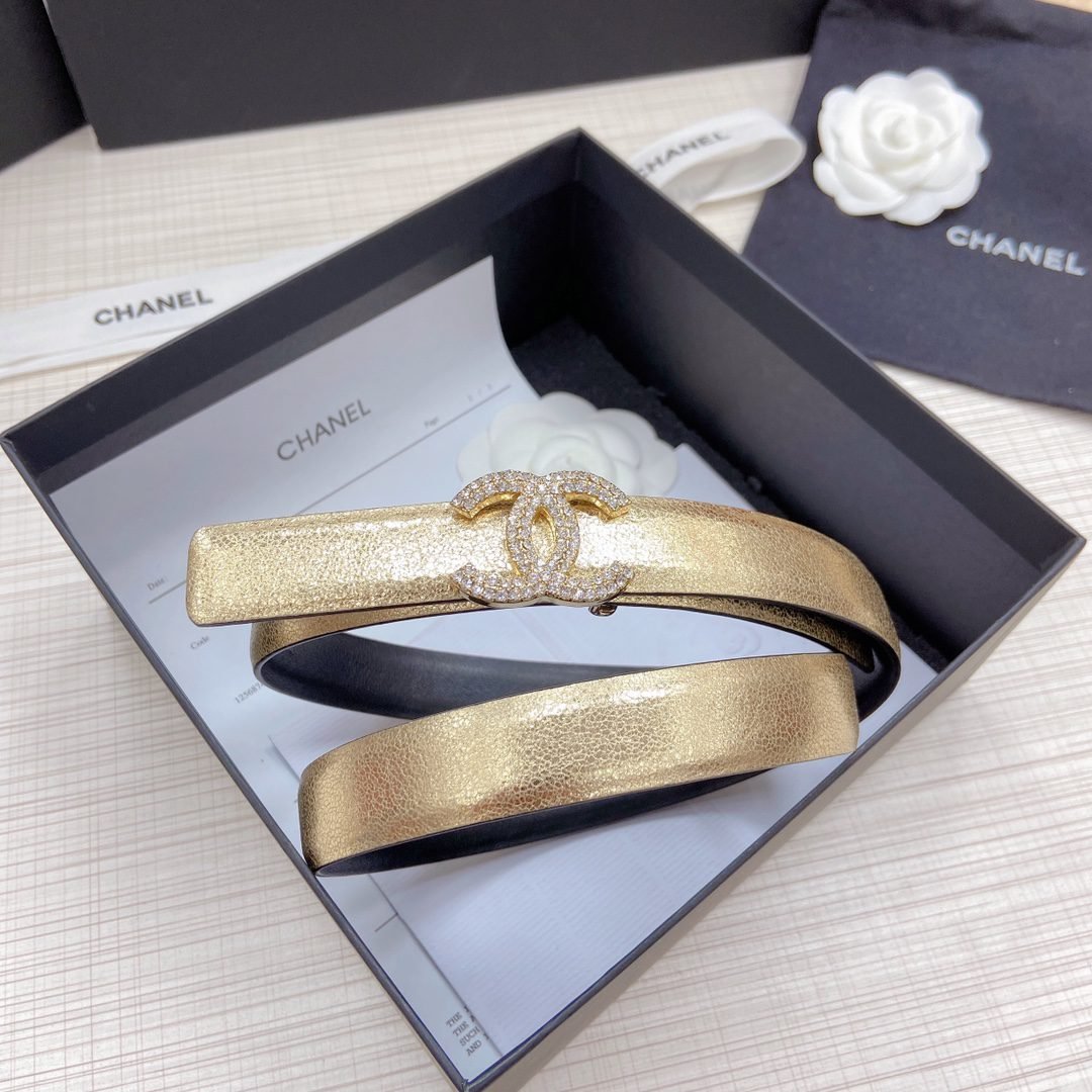Home Belt CHANEL Belt Chanel’s classic double C diamond studded buckle belt is simple, atmospheric, low-key, and luxurious