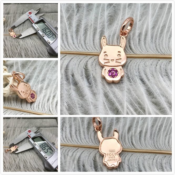 Home JEWELRY TOUS TOUS Pendant Chinese Horoscope Rabbit Pendant in Rose Silver Vermeil with Ruby