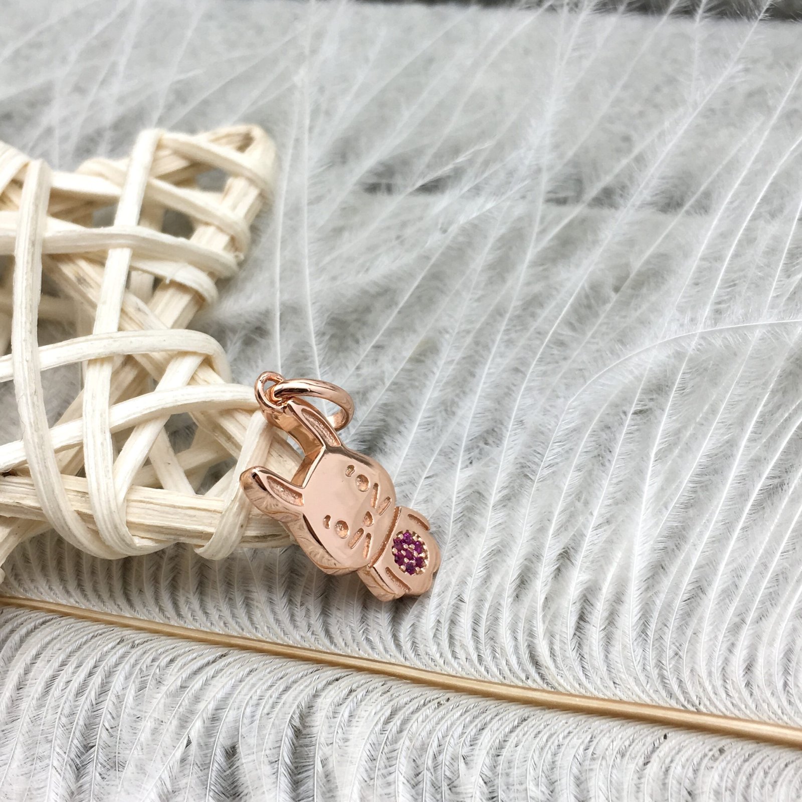 Be the first to review “Chinese Horoscope Rabbit Pendant in Rose Silver Vermeil with Ruby” Cancel reply