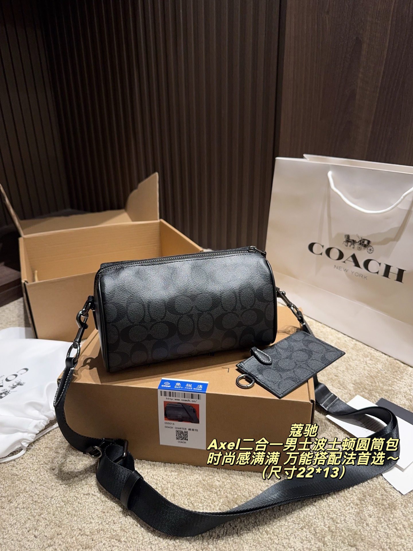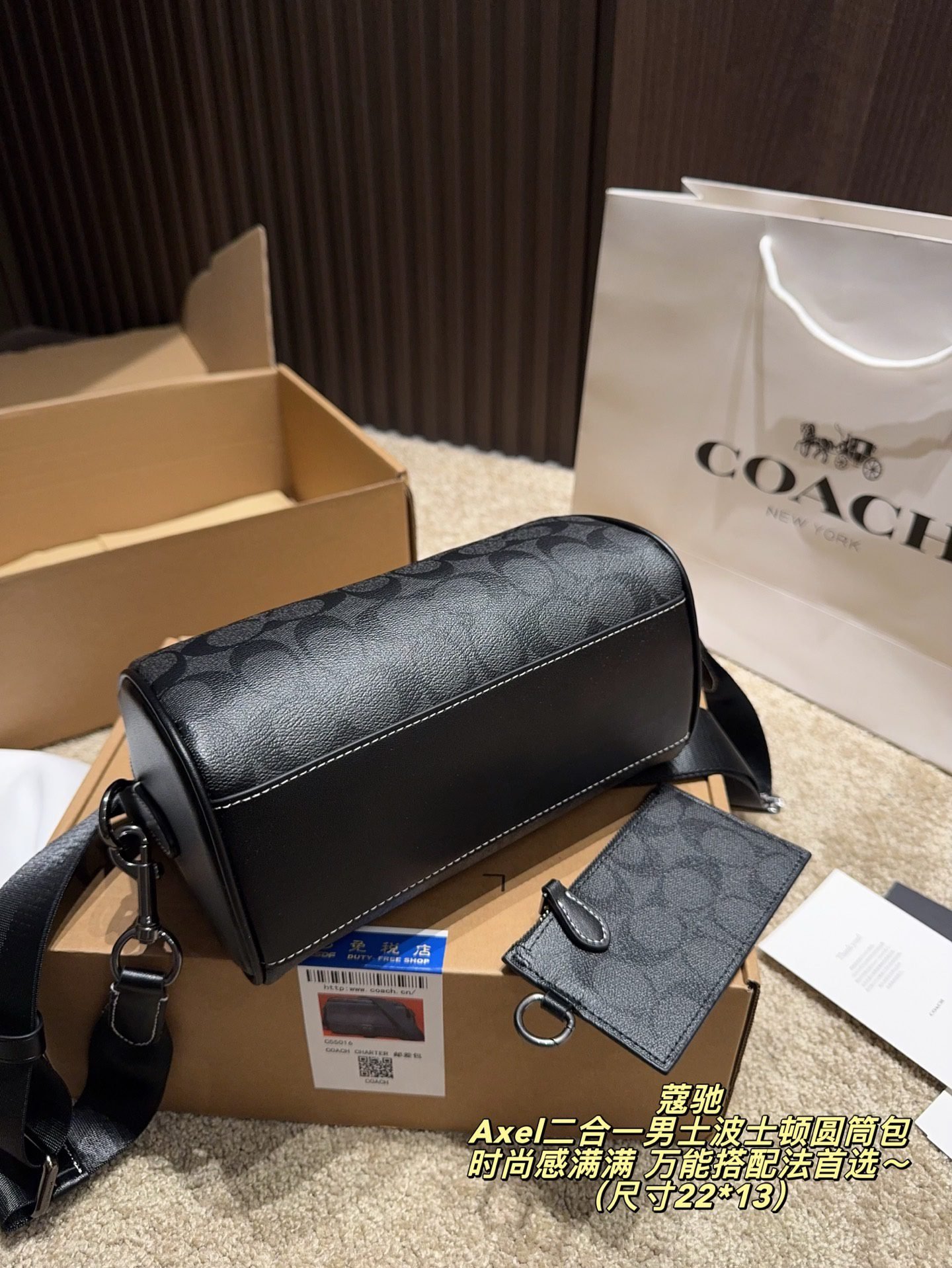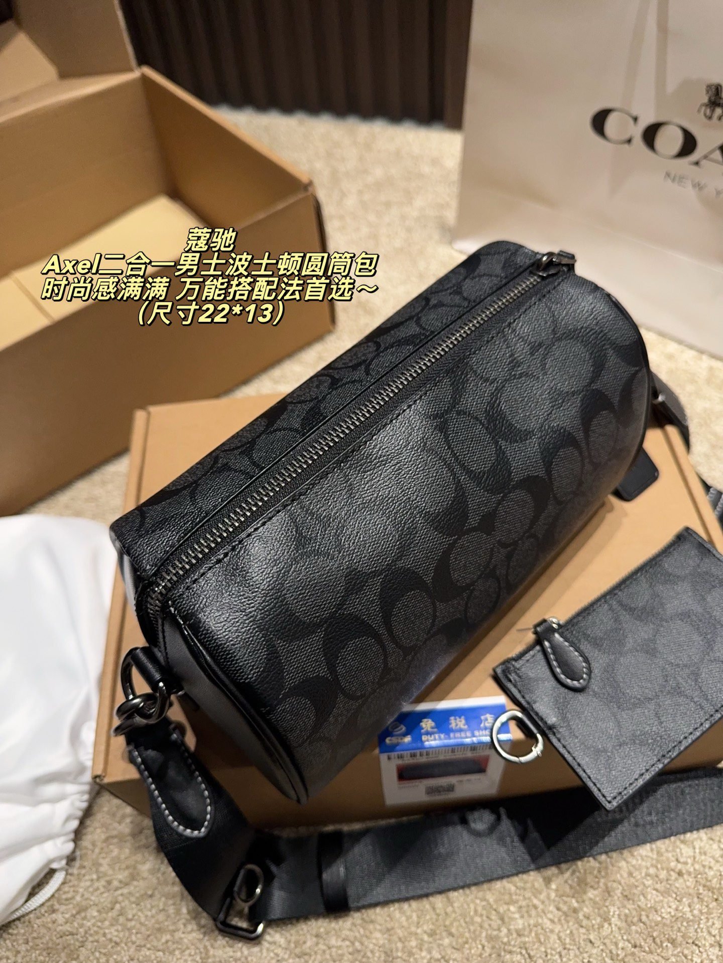 Home BAGS Coach Bag COACH Axel 2-in-1 Men’s Boston Barrel Bag: Signature Monogram with Versatile Styling (22×13cm)
