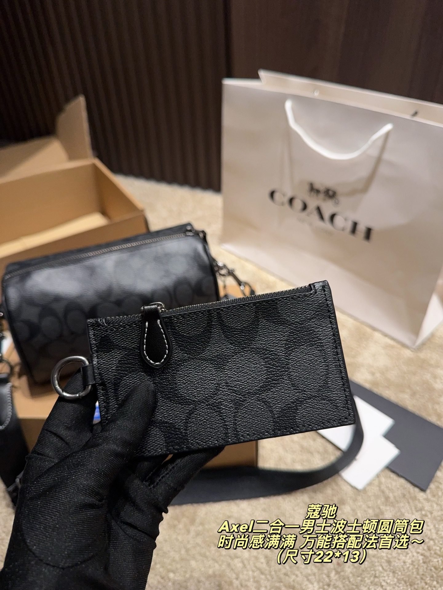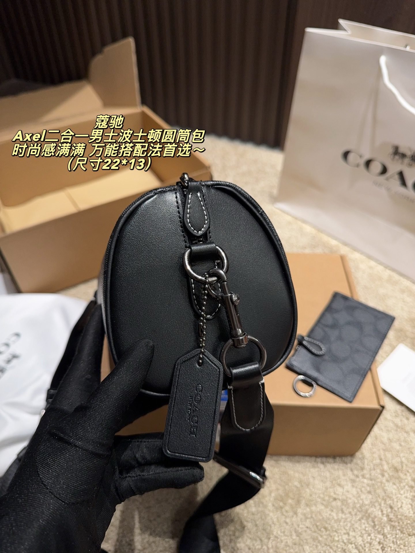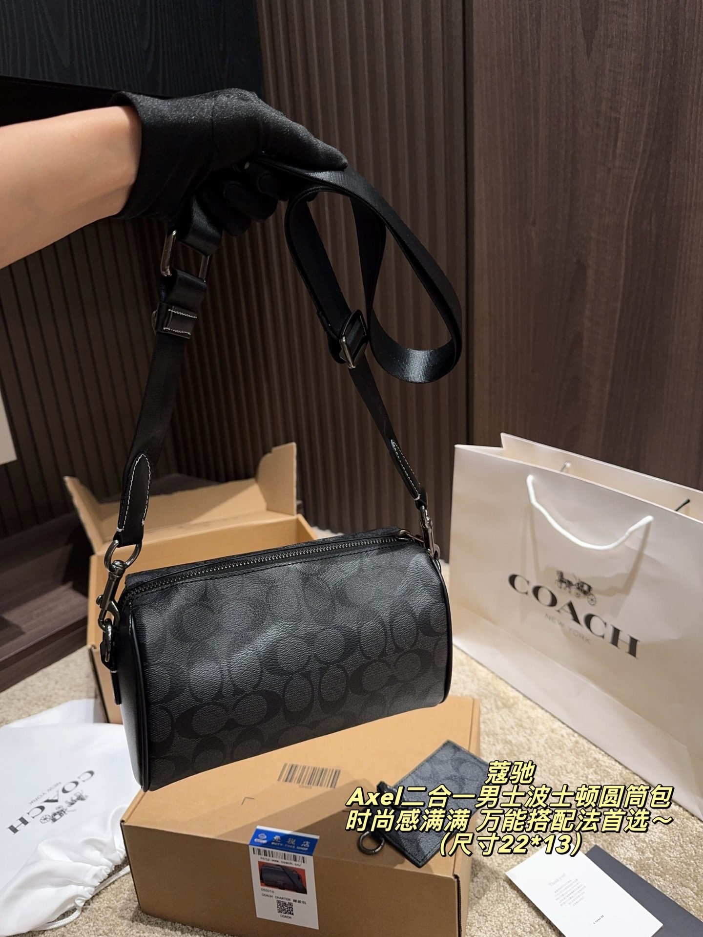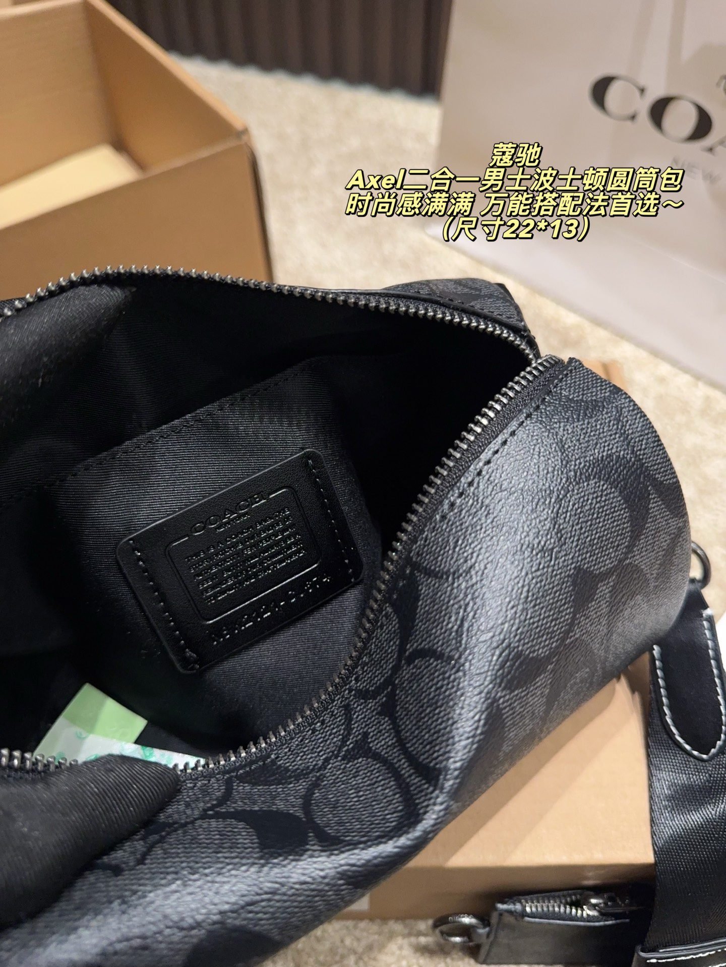 Be the first to review “COACH Axel 2-in-1 Men’s Boston Barrel Bag: Signature Monogram with Versatile Styling (22×13cm)” Cancel reply