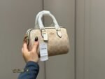 This COACH mini satchel bag features the brand’s iconic monogram pattern, crafted from premium coated canvas and leather trim, with a compact silhouette of 18×12cm. Embodying COACH’s legacy of classic charm and practical design, it comes with a top handle and detachable strap for versatile styling. The timeless beige hue and polished hardware make it a perfect choice for those who appreciate iconic branding, reliable craftsmanship, and effortless elegance in daily outings or as a chic accessory to elevate any look.