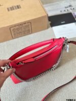 This COACH shoulder bag is crafted from premium calfskin leather, featuring a distinctive chain strap, structured silhouette, and the brand’s iconic C logo. Embodying COACH’s legacy of accessible luxury and contemporary style, it comes with a top handle and adjustable chain for versatile styling. The vibrant red hue adds a bold touch, making it perfect for those who appreciate modern design, reliable craftsmanship, and effortless elegance in daily outings or social events.