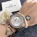 Be the first to review “COACH watch circular minimalist dial with diamond border and metal steel band” Cancel reply