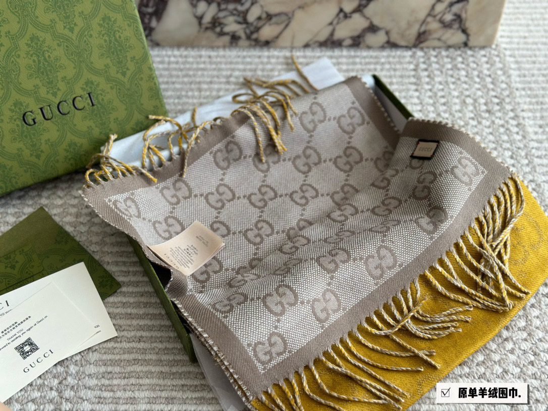 Comes with gift box ➕ Gift bag ➕ Invoice Cool Gucci scarf, I give the color full marks!!