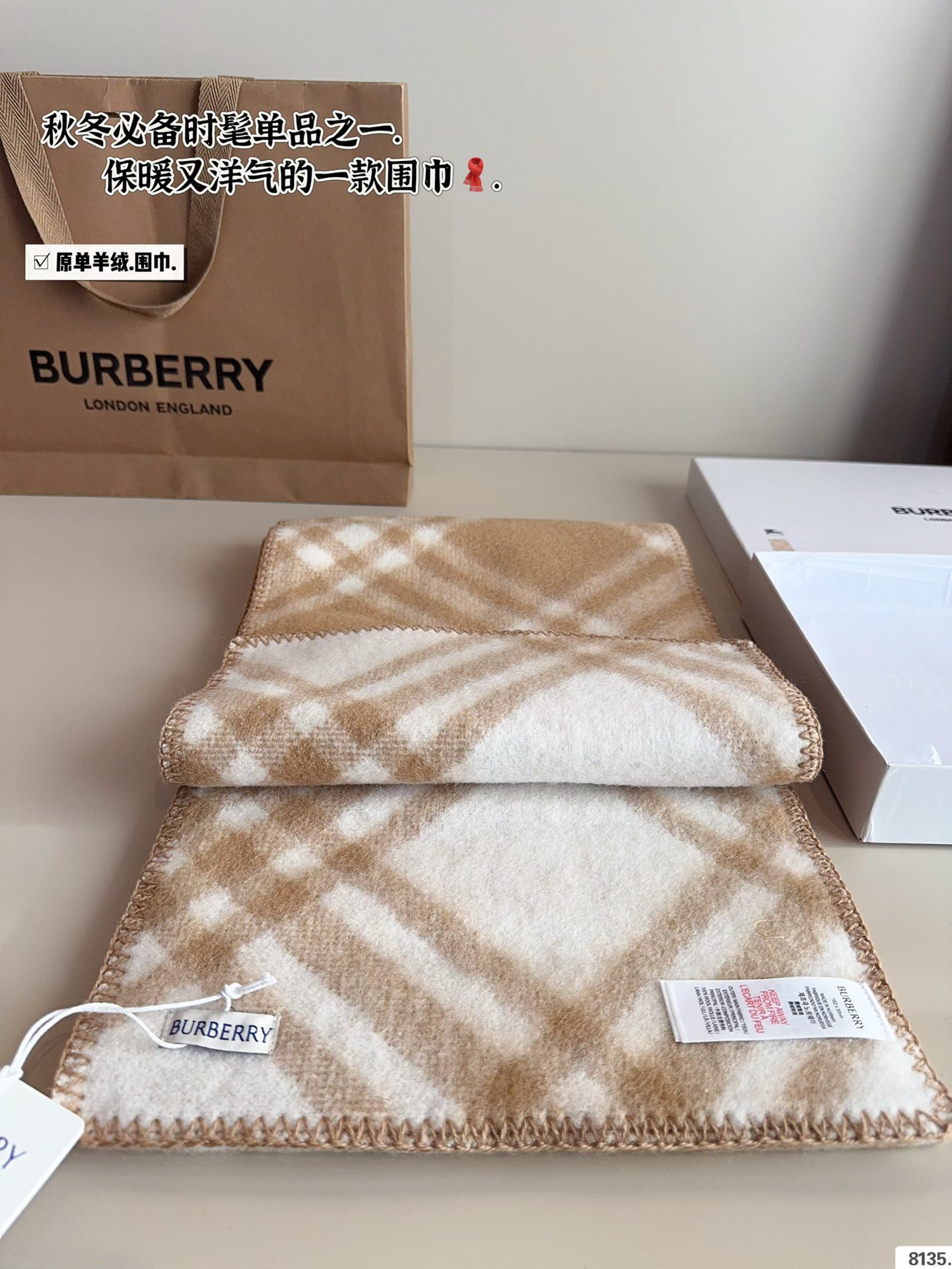 Comes with gift box ????. Burberry scarf The gentlest color scheme A highly atmospheric cashmere scarf~