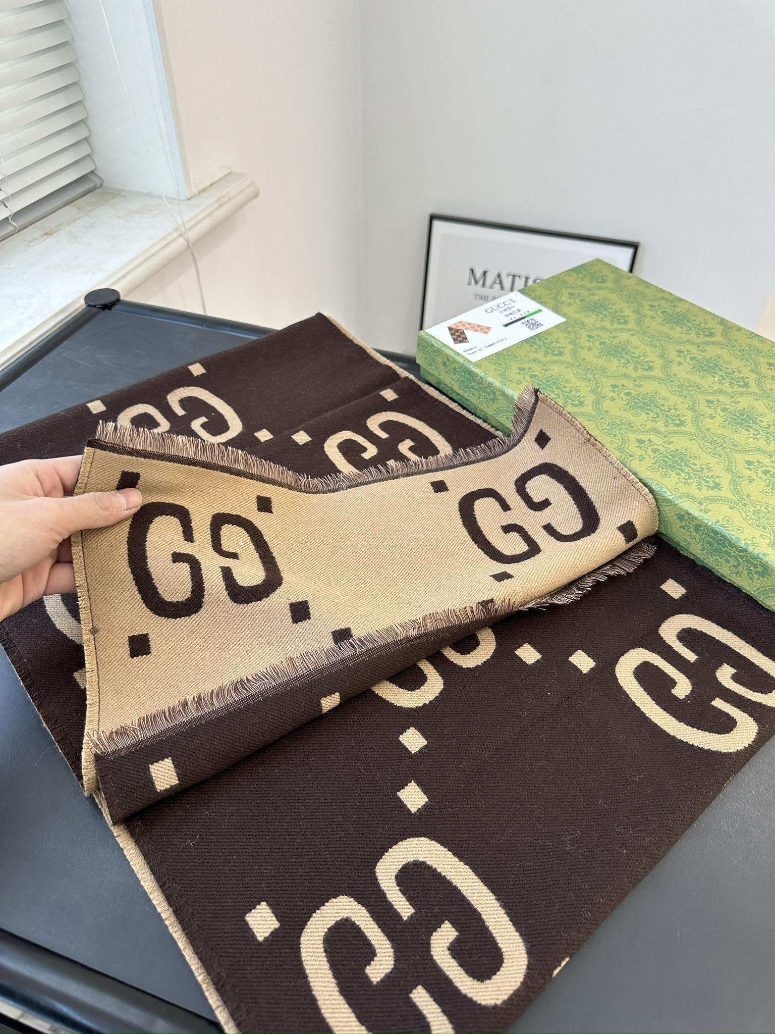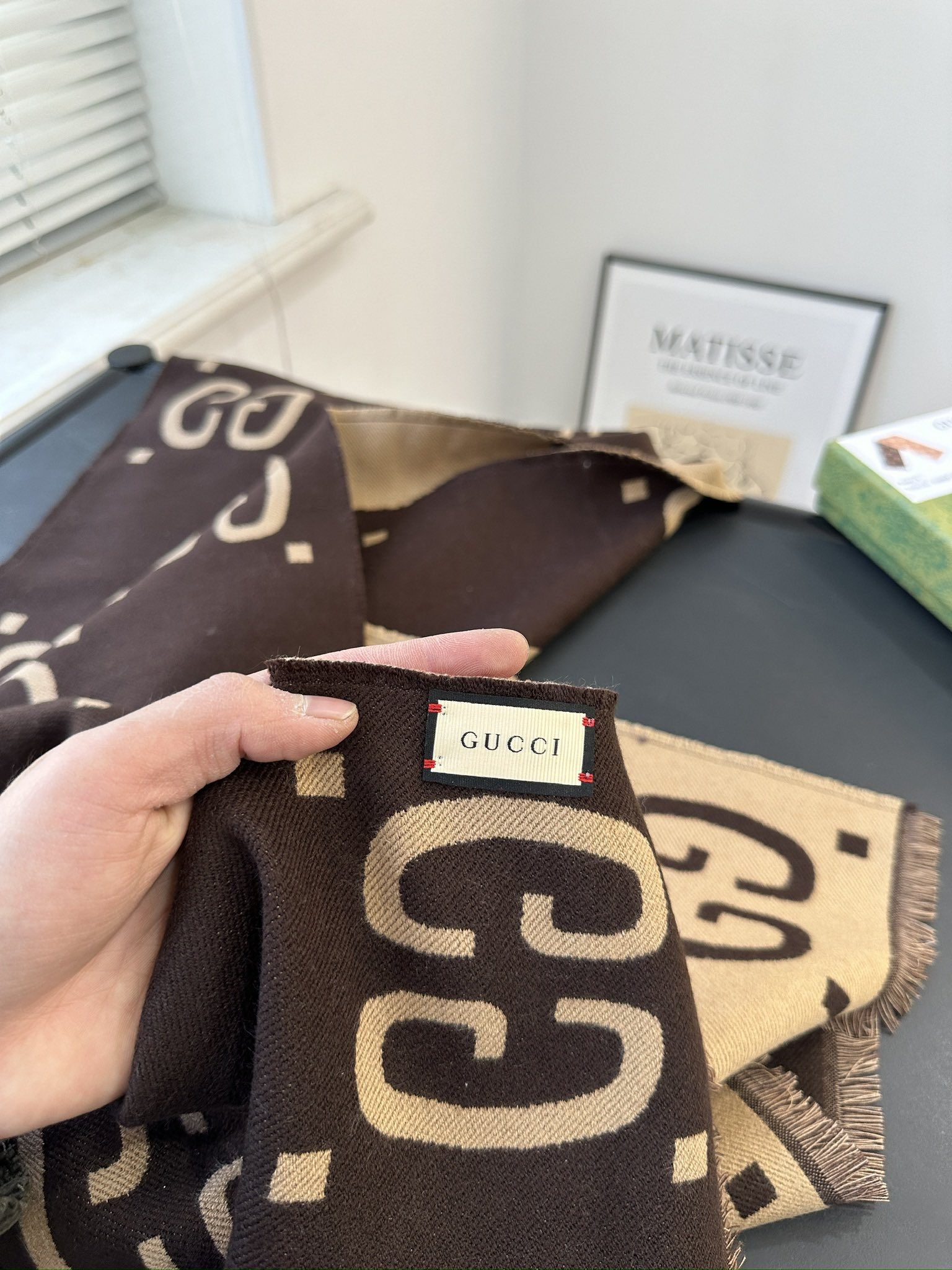 Comes with gift box ➕ Gift bag ➕ Invoice Cool Gucci scarf, I give the color full marks!!