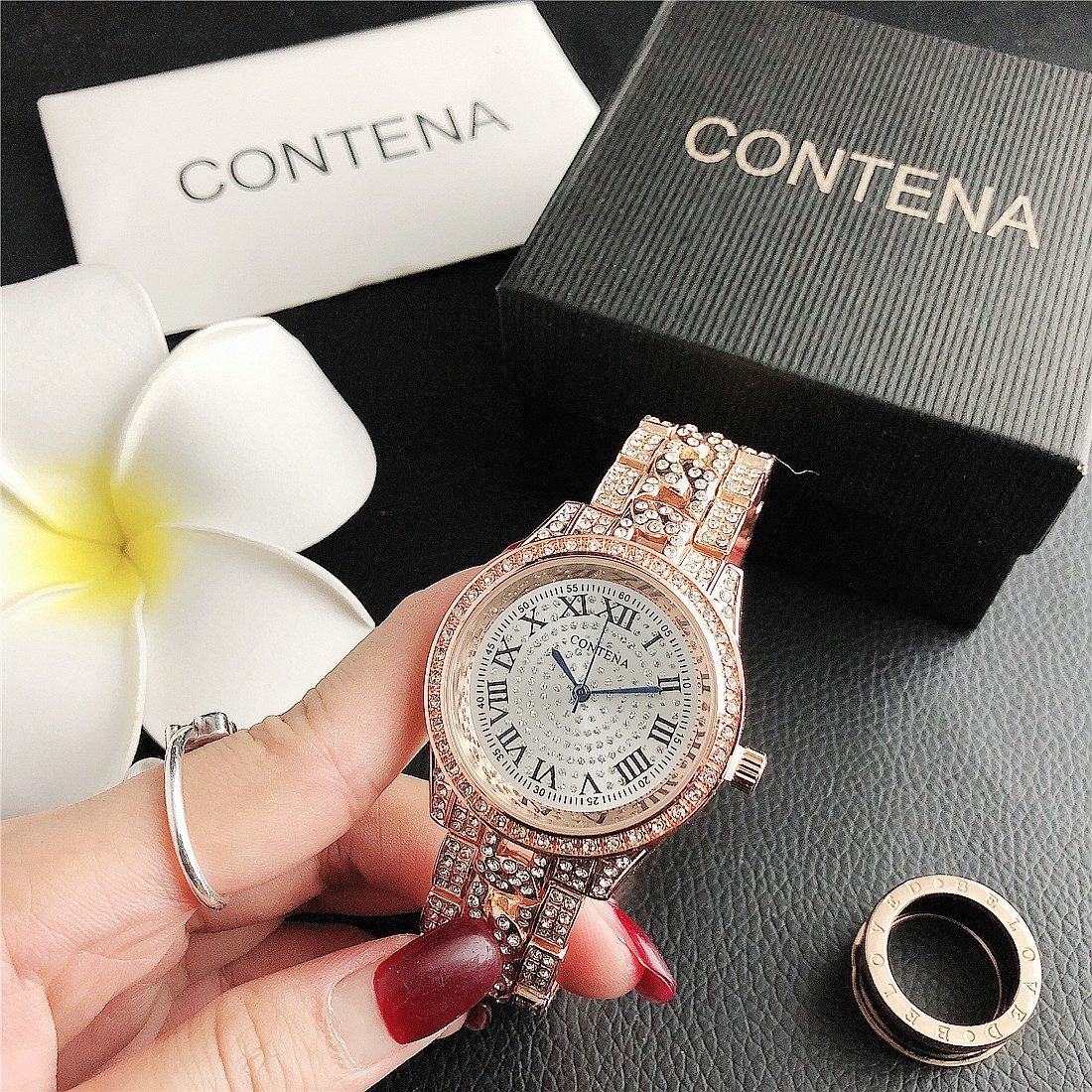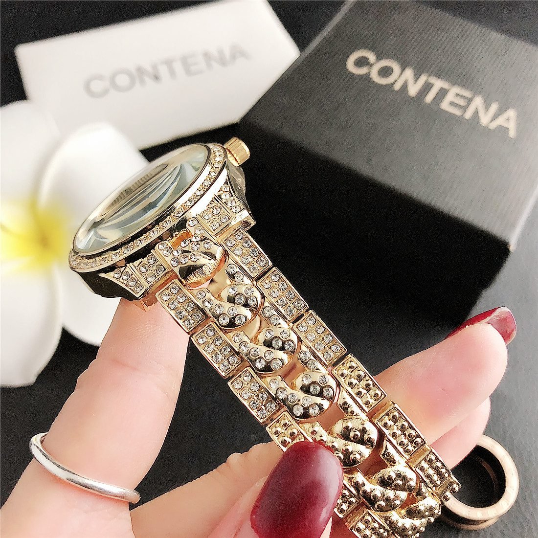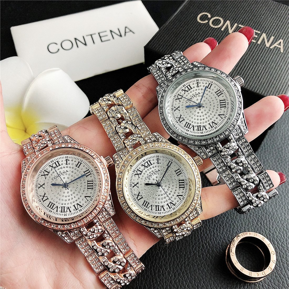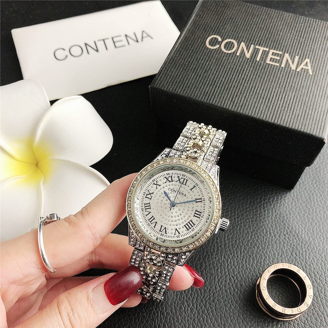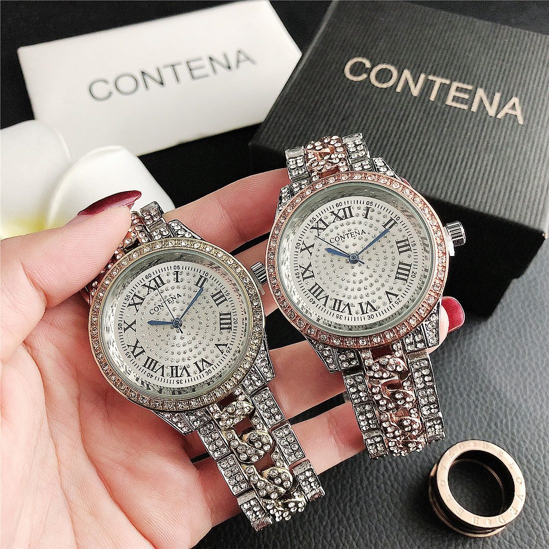 Be the first to review “CONTANA watch with round diamond bezel and premium dial with steel band” Cancel reply