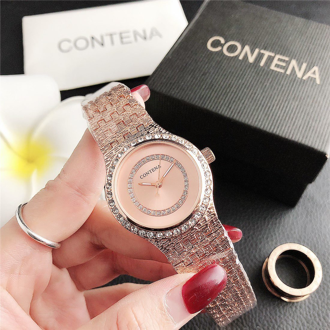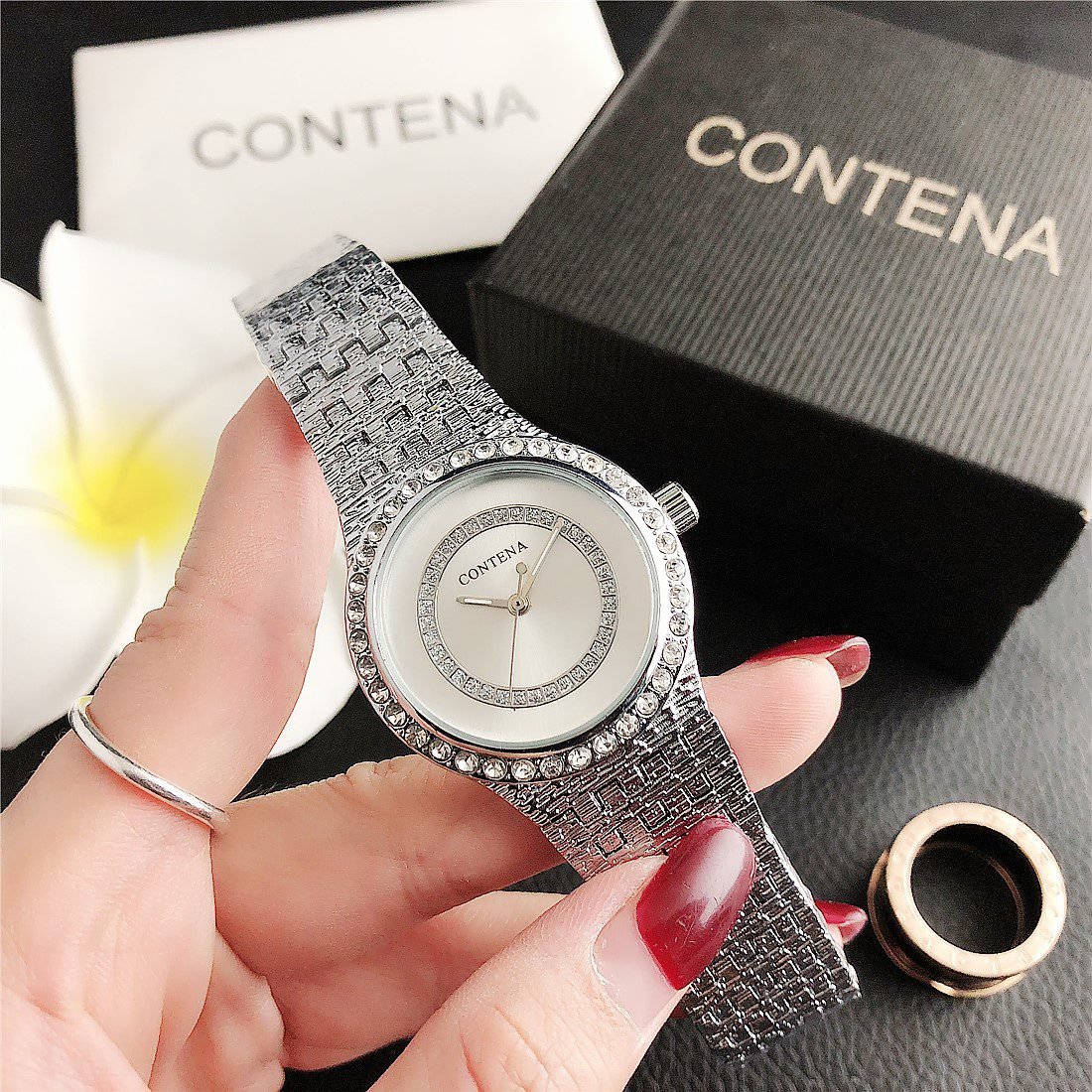 Be the first to review “Contena watch with round diamond inlaid high-end dial and steel band” Cancel reply