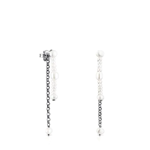 Revamp your look with these dark silver and pearl earrings from the Virtual Garden collection, inspired by nature, the countryside and the organic shapes of its animals and plants, in a fusion of the urban and natural worlds.