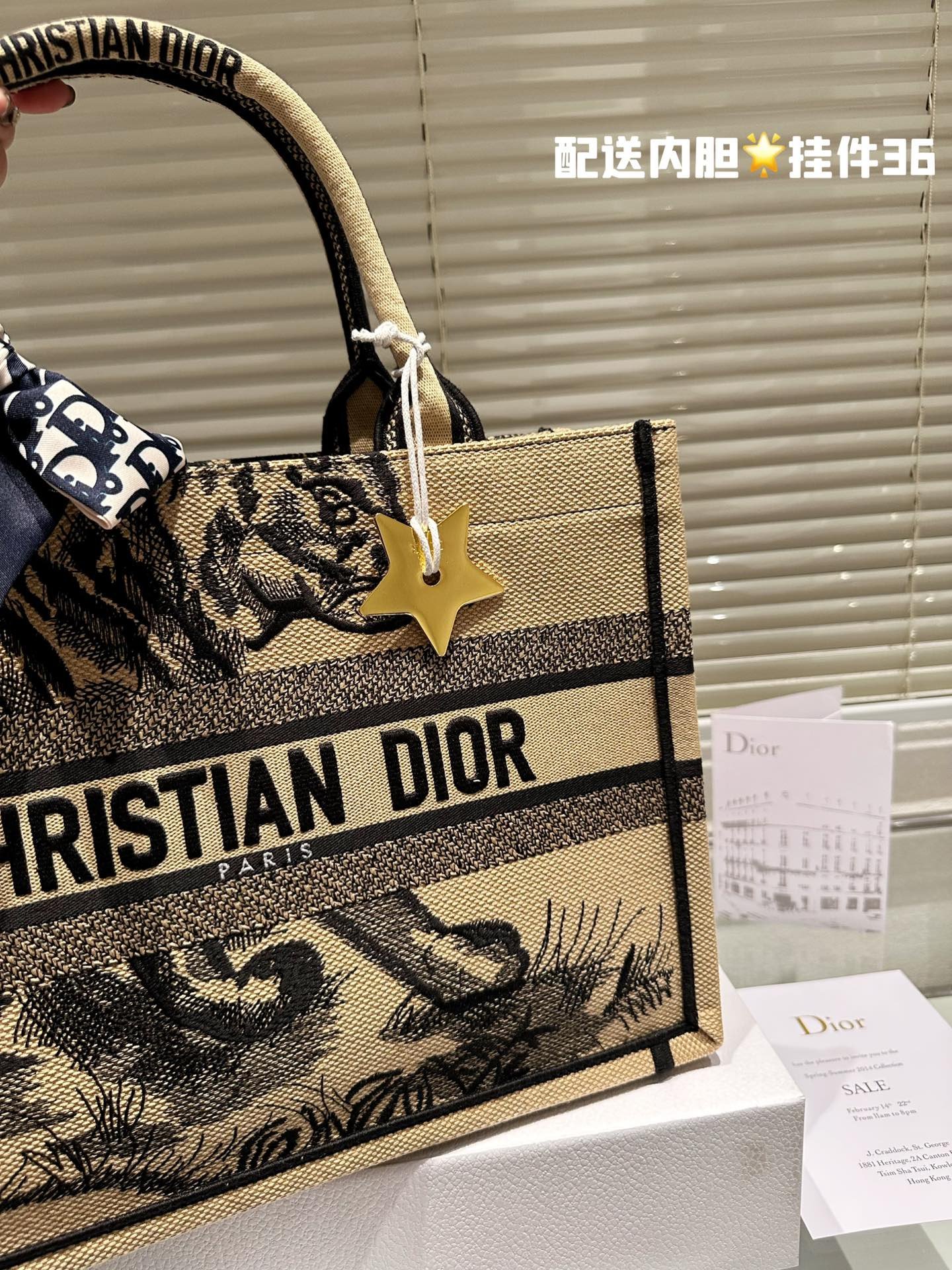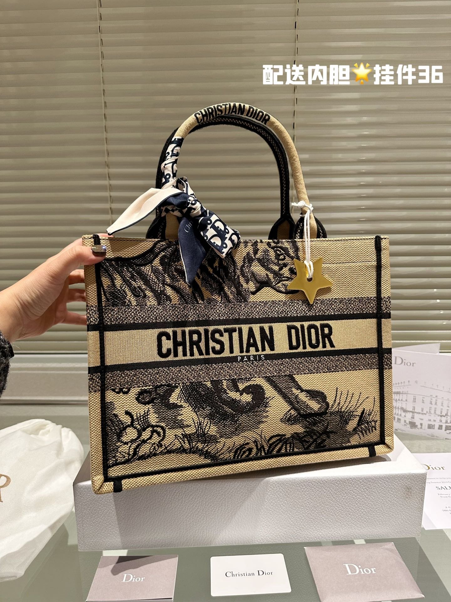 Dior original fabric jacquard with liner/scarf/star