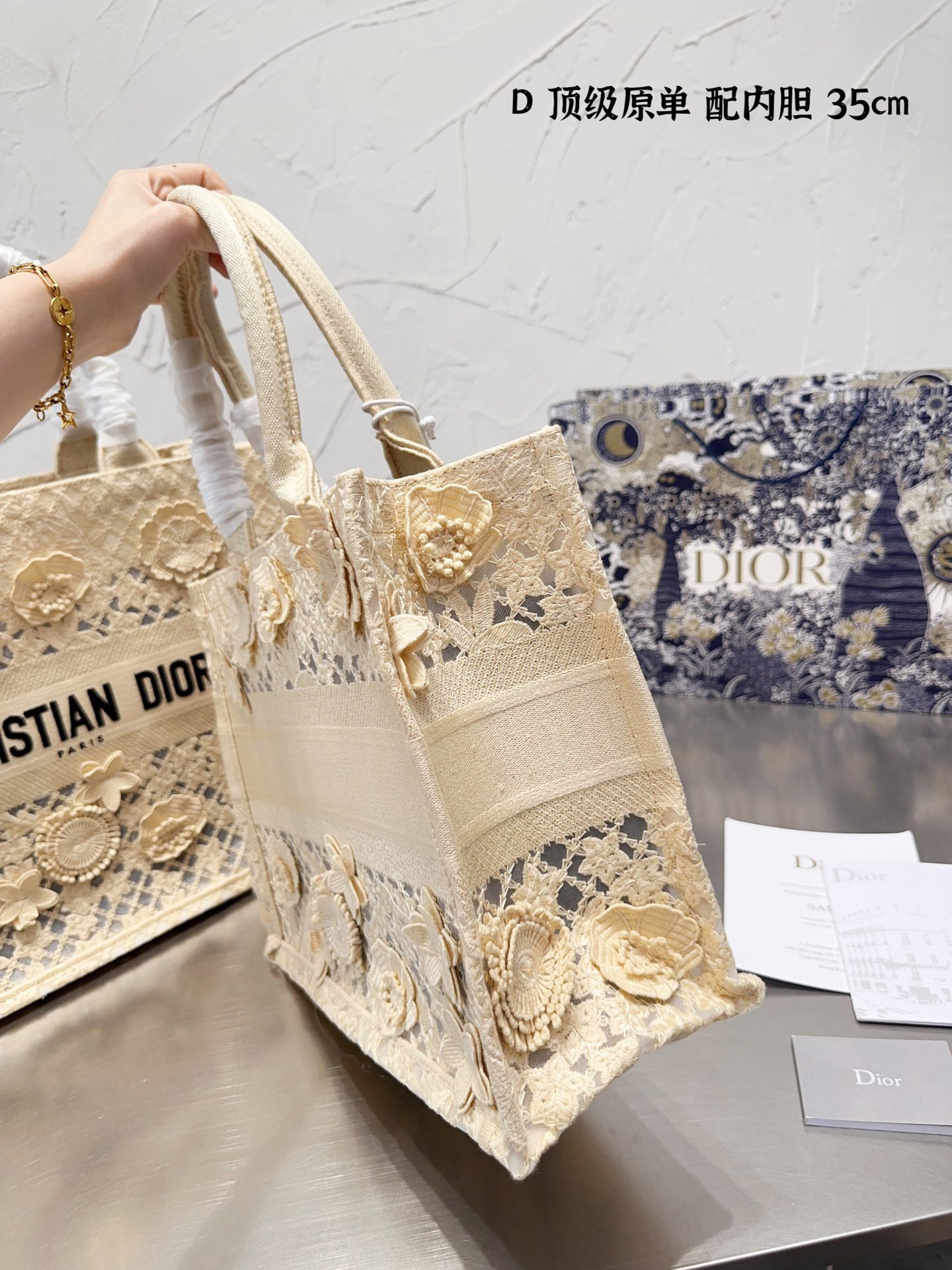 Dior 3D follower embossed jacquard book tote bag cream white size: 42cm /36cm /26cm