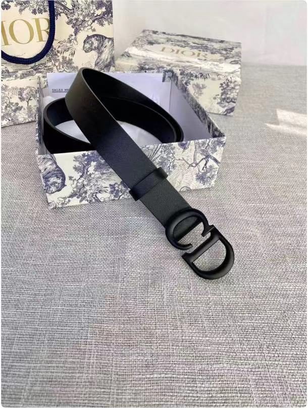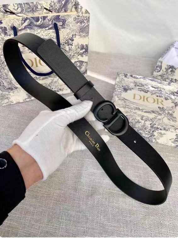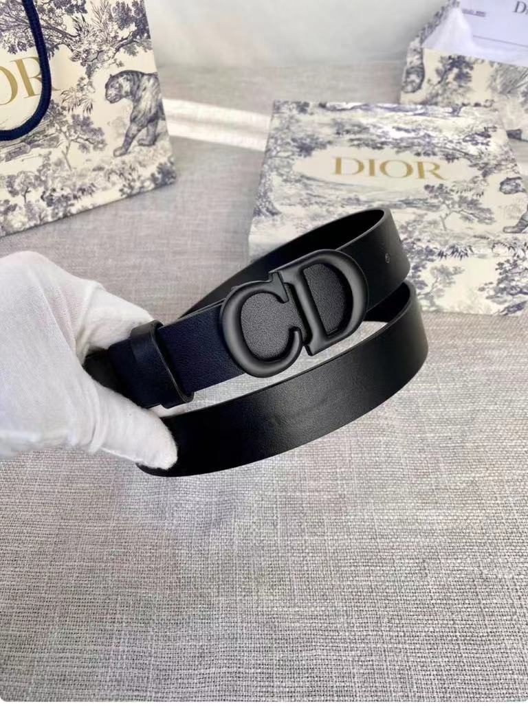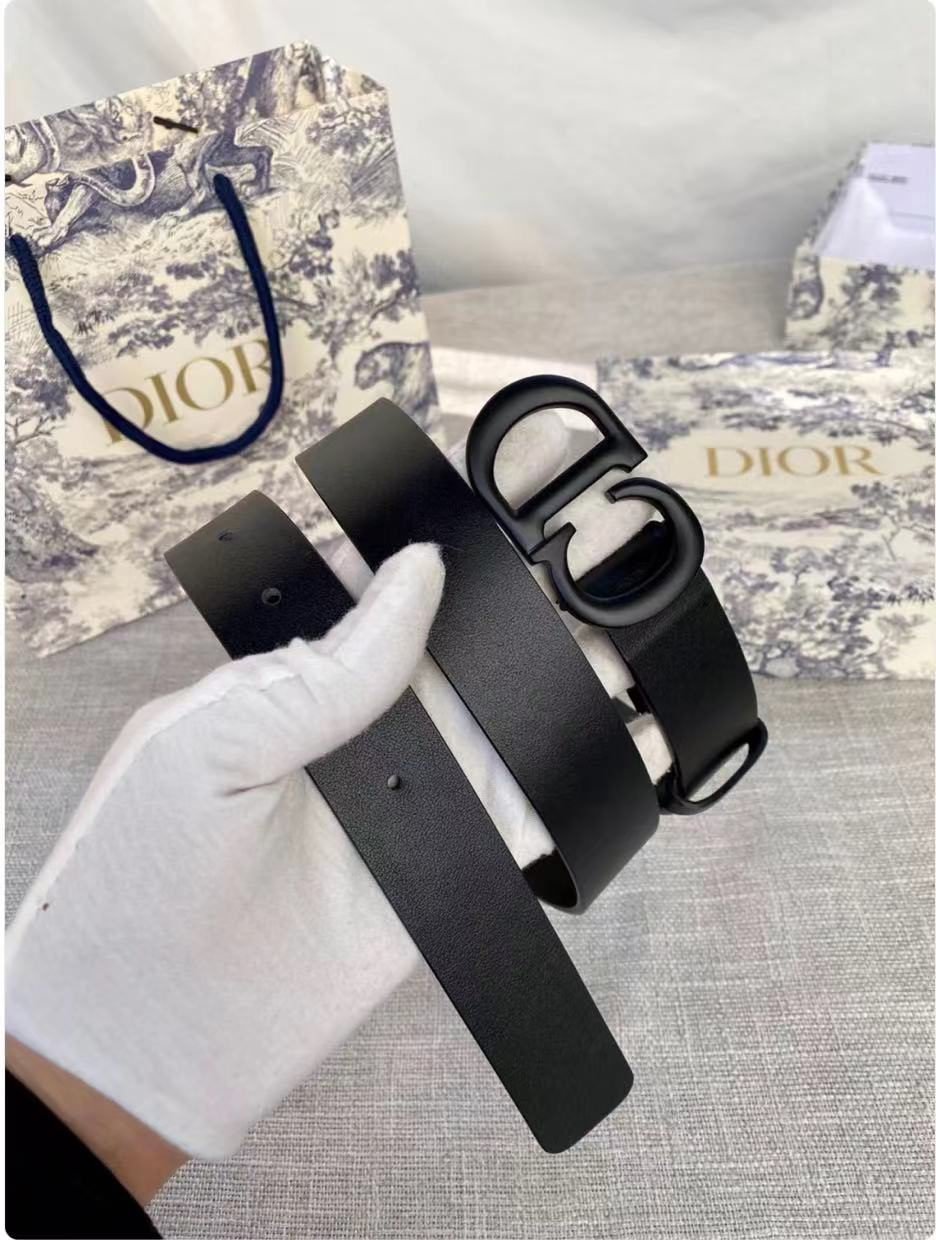 DIOR black D-buckle black belt, with its unique D-shaped metal buckle design, highlights the high-end and uniqueness of the brand. The black belt is made of high-quality leather, which is soft and comfortable to the touch and has good durability. The D-shaped buckle has been processed with fine craftsmanship and has a bright luster. The brand logo is clearly visible and highly recognizable.