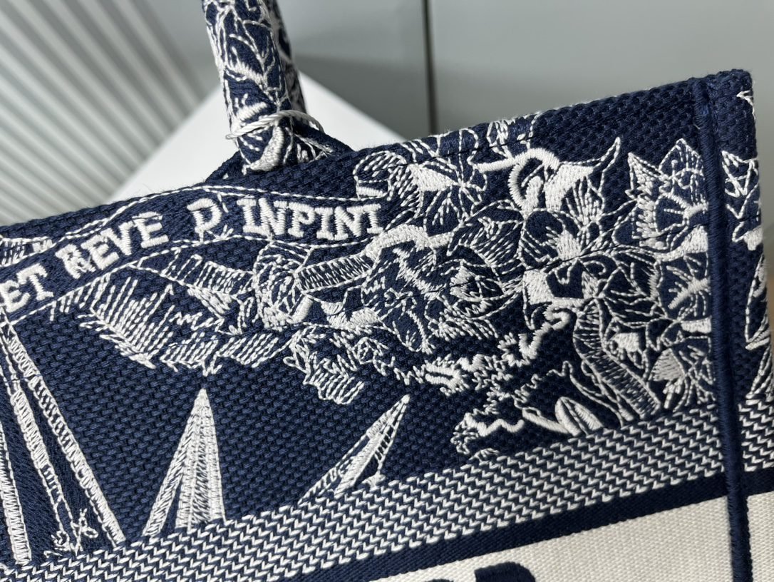 The book tote handbag was designed by dior’s women’s creative director maria grazia chiuri and is a flagship piece reflecting dior’s aesthetic. The whole body is decorated with multi-colored reve dinfini pattern embroidery designed by artist pietro ruffo, injecting dreamy elements into the classic design, a new interpretation of christian dior’s favorite star symbol, which can store a variety of daily items. Medium style, decorated with the christian dior paris logo on the front, highlighting dior’s exquisite craftsmanship, can be carried or shoulder-back. Size: 36×27.5×16.5 Color: Blue, gold, multi-color
