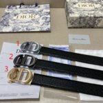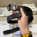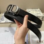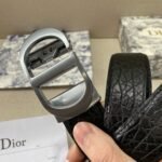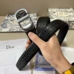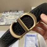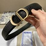 The Dior D-buckle black leather belt, with its excellent quality and exquisite craftsmanship, demonstrates unparalleled nobility and elegance. The belt is made of top-grade black leather, which is soft and elastic, with a delicate and smooth touch, showing an extraordinary texture. The golden buckle adopts exquisite polishing process, with smooth and rounded edges, exuding a charming metallic luster, which contrasts sharply with the black belt, highlighting a low-key luxury.