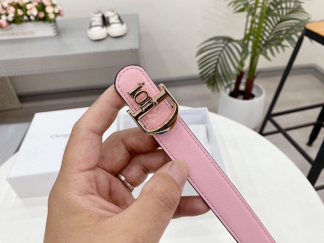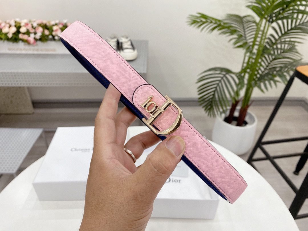 Home Belt DIOR Belt Dior Classic D-Buckle Pink Blue Double sided Belt Simple and Elegant, Low key Luxury