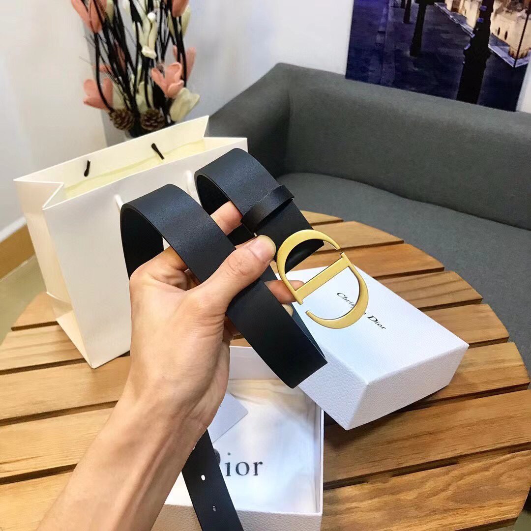 Dior Classic Gold D-Buckle Black Belt Classic Fashion Noble and Elegant