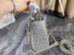 This Dior Mini Lady Dior bag showcases a stunning crystal-embellished Cannage pattern, featuring signature metal charms, a compact size of 17×14cm, and a luminous silver hue. Embodying Dior’s legacy of luxurious craftsmanship and glamorous design, this bag merges iconic details with eye-catching sparkle. Perfect for those who seek to make a bold fashion statement, it adds a touch of opulence to any ensemble, ideal for special occasions or as a standout accessory.